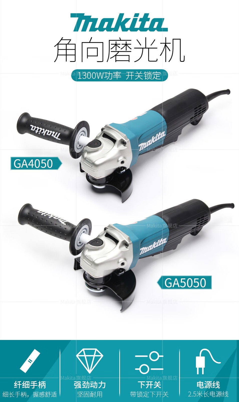 Mujer de ángulo Makida Makida GA4050 Molinador de alta potencia 1300W cortador GA5050 gatillo 100