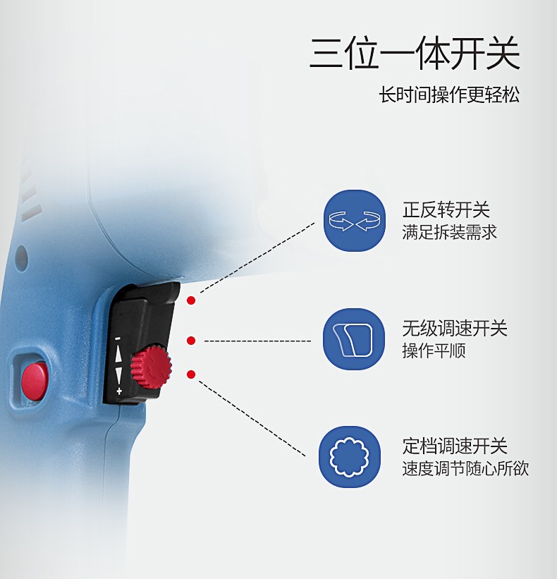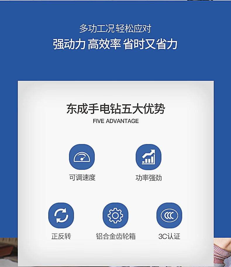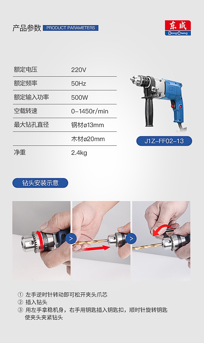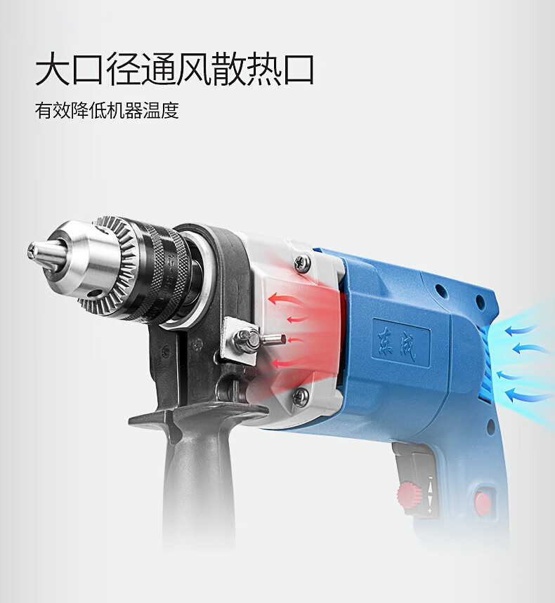 Dongcheng taladro eléctrico de mano hacia adelante y hacia atrás puede ajustar la velocidad de la herramienta eléctrica de taladro de agujero abierto de alta potencia 1450 rpm J1Z-FF0