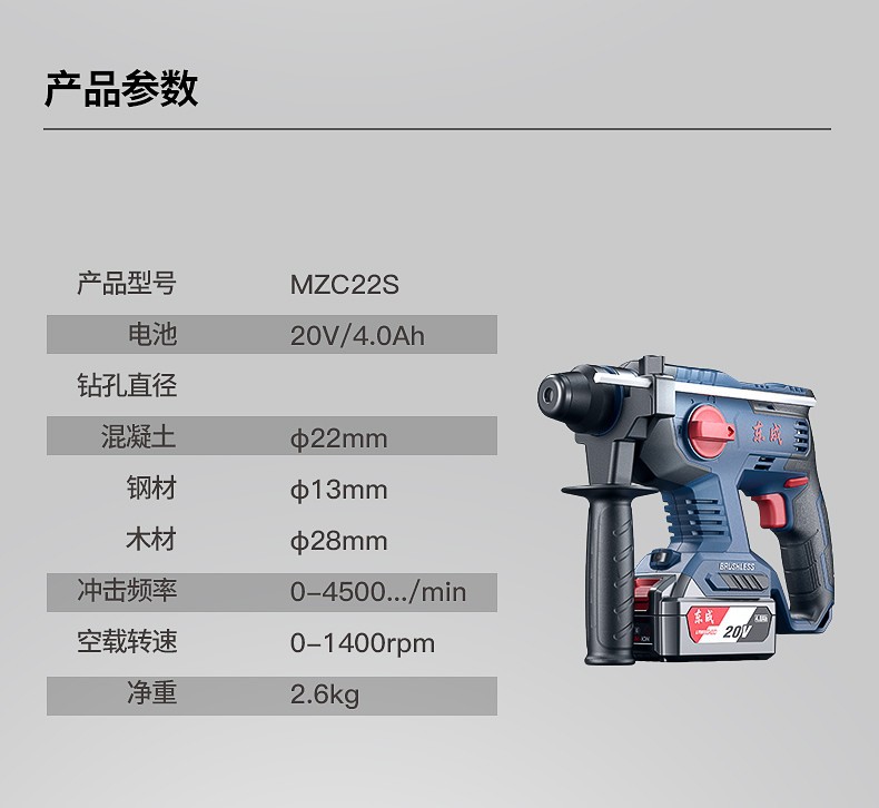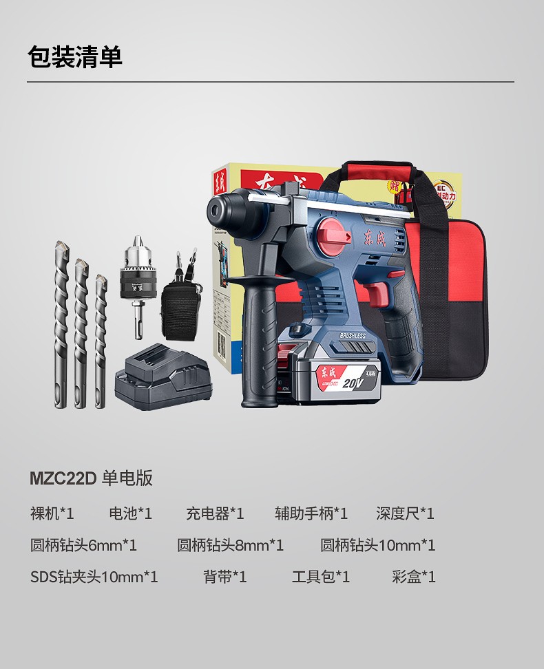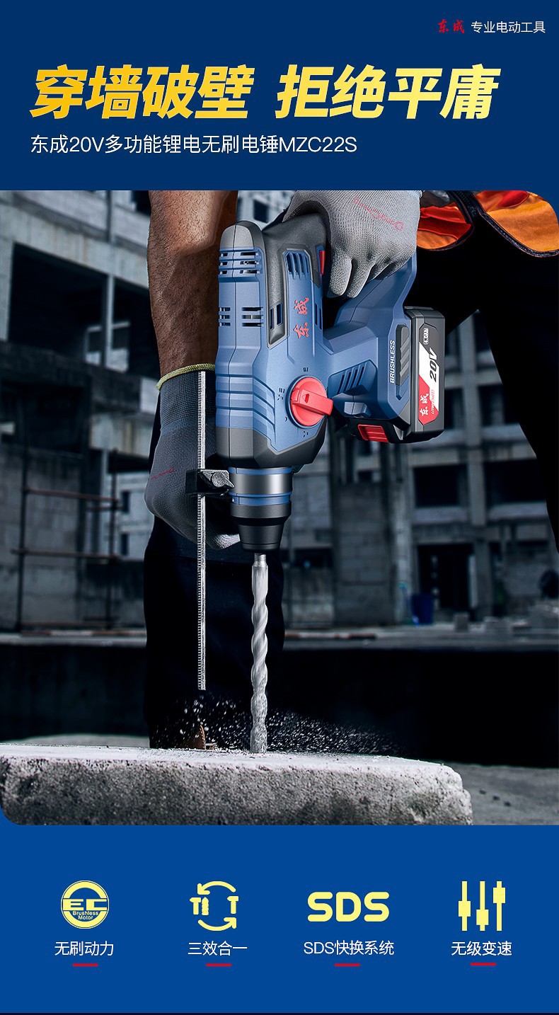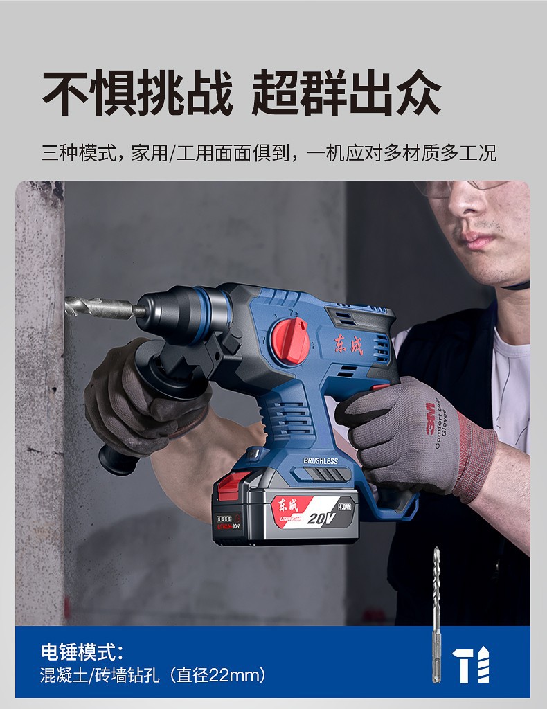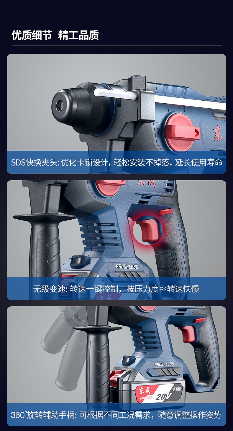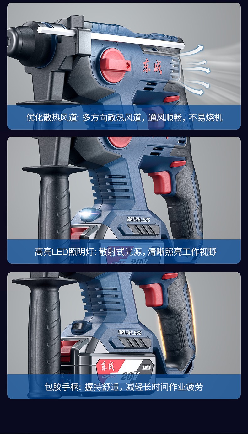 Dongcheng martillo de carga de litio sin escobillas profesional actualización de batería de gran capacidad 4.0Ah martillo de perforación de impacto