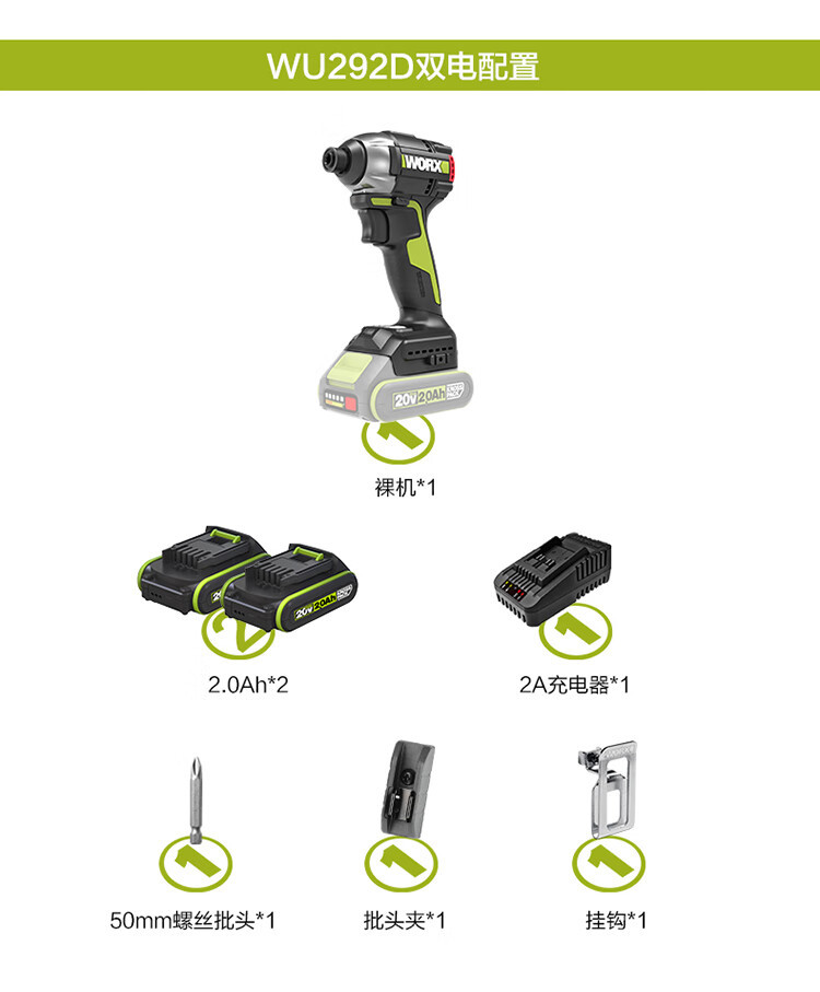| Modelo | [cargador sin batería de metal desnudo] wu292d.9, [2.0ah doble electricidad] destornillador de impacto wu292d, [2.0ah sola electricidad] destornillador de impacto wu292d.1, [4.0ah sola electricidad] destornillador de impacto wu292d |