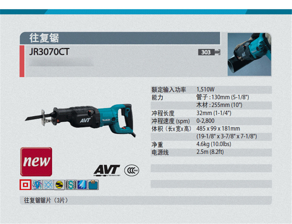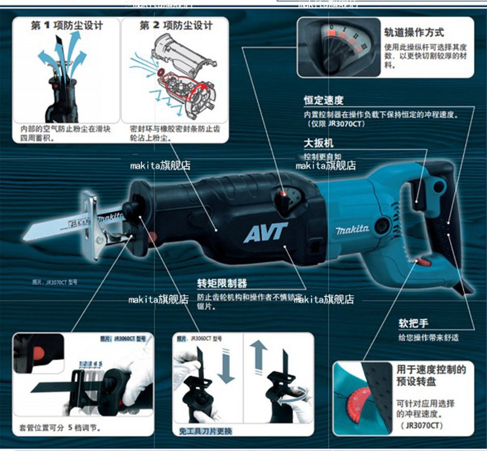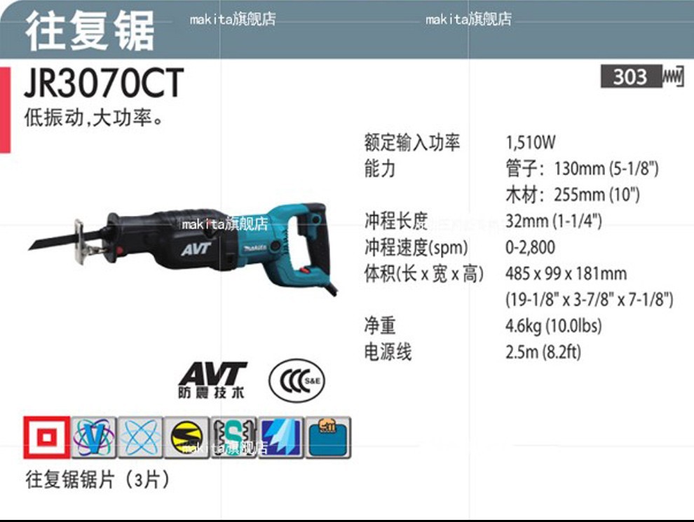 Makita (Makita) recíproco sierra de madera 1510W antichoque de alta potencia JR3070 trabajo eléctrico