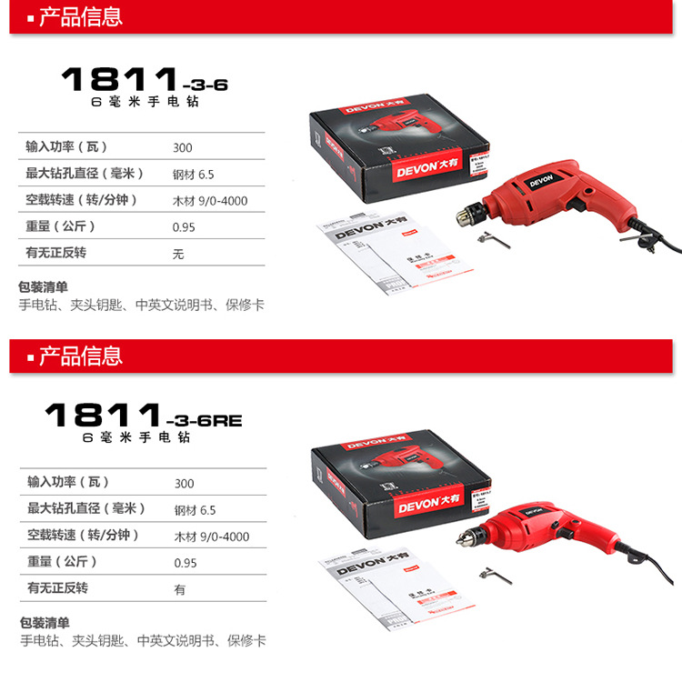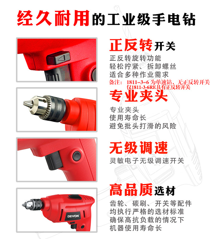 Dayou (Devon) taladro eléctrico de 6 mm serie 1811 taladro eléctrico doméstico multifuncional destornillador de taladro eléctrico 300W
