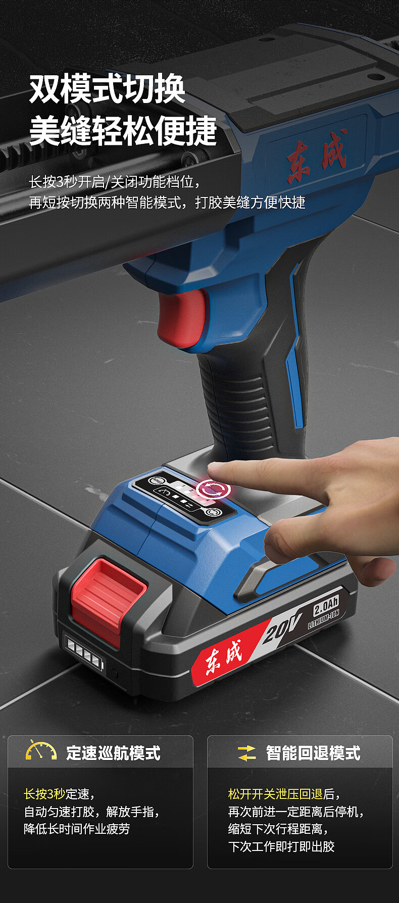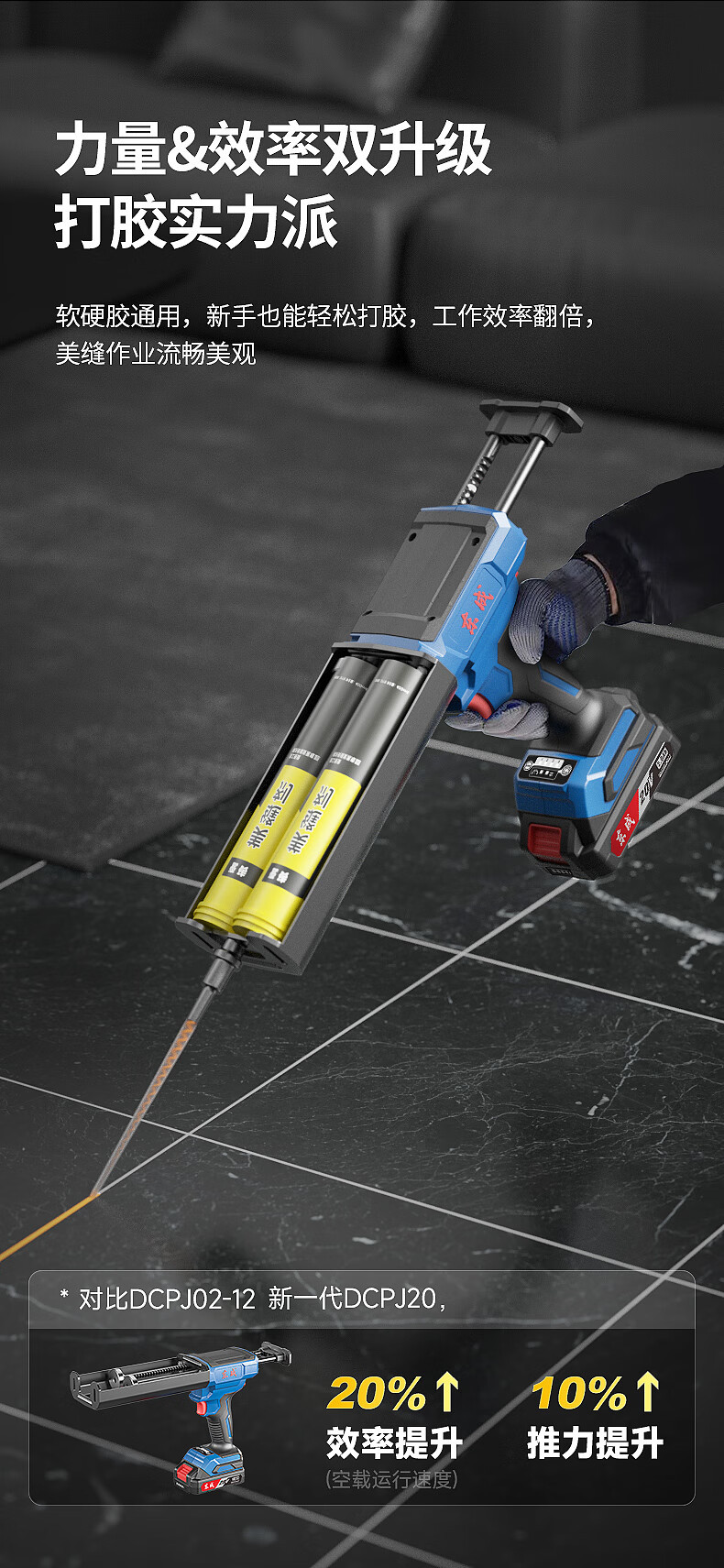 Dongcheng pistola de pegamento de doble tubo DCPJ20AM carga de doble componente pistola eléctrica de belleza de azulejos