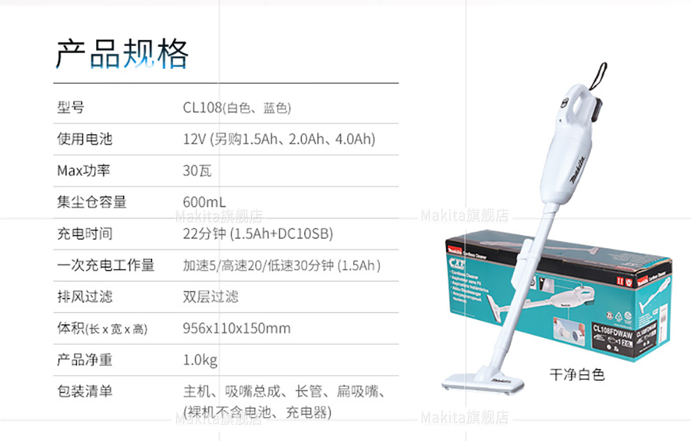| Especificaciones | CL108FDSAP una sola carga rápida 2.0AH, CL108FDMAP una sola carga rápida 4.0AH, CL106FDWMW blanco una sola carga 4.0Ah, CL106 una sola carga 1.5ah + DF001 conductor, CL106 aspirador una sola carga lenta 1.5ah, CL106FDZW metal desnudo sin cargador de batería, CL108FDWYW blanco una sola carga 1.5Ah, CL108FDWMW blanco una sola carga 4.0Ah, CL106 una sola carga de lujo paquete de almacenamiento de lujo 4.0Ah, CL108 una sola carga lenta almacenamiento de lujo 4.0ah, CL108FDWEW Blanco de una sola batería lenta 2.0Ah, CL108 de una sola batería 4.0 Bajo de polvo blanco + soporte, CL108FDW conjunto de lujo de una sola batería 4.0ah, CL108FDWMW paquete de lujo 4.0ah |