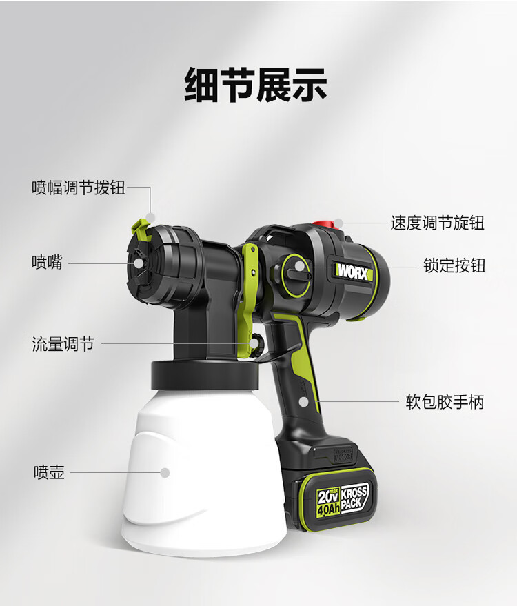 20V pulverización de litio sin escobillas pistola WU056 pulverización de pintura de látex máquina de pulverización de pintura artefacto herramienta eléctrica