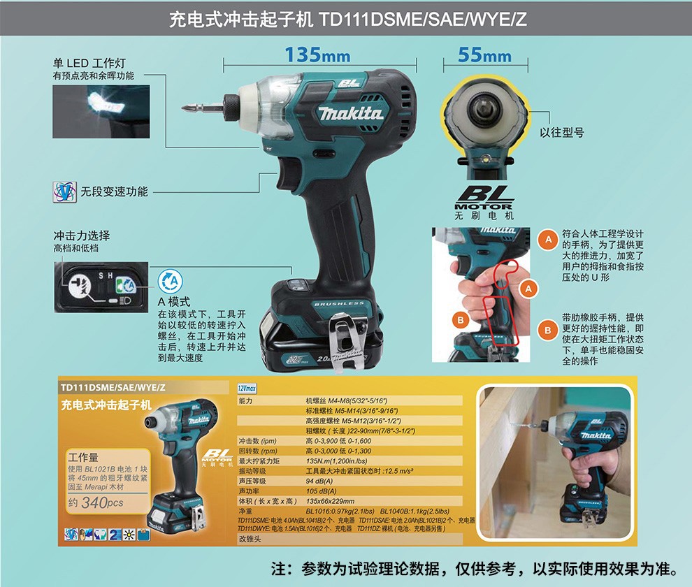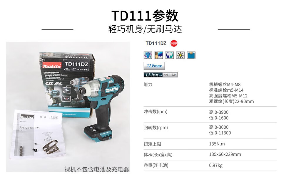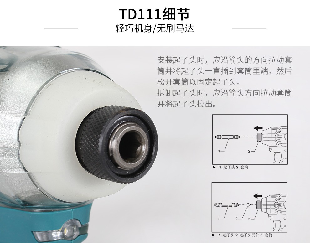 | Modelo | Td111dsme impacta la versión de carga rápida de doble electricidad del destornillador 4.0, td111dsae impacta la versión de carga rápida de doble electricidad del destornillador 2.0, Makada td111dz destornillador desnudo, td111dsye impacta la carga rápida del destornillador 1.5 |