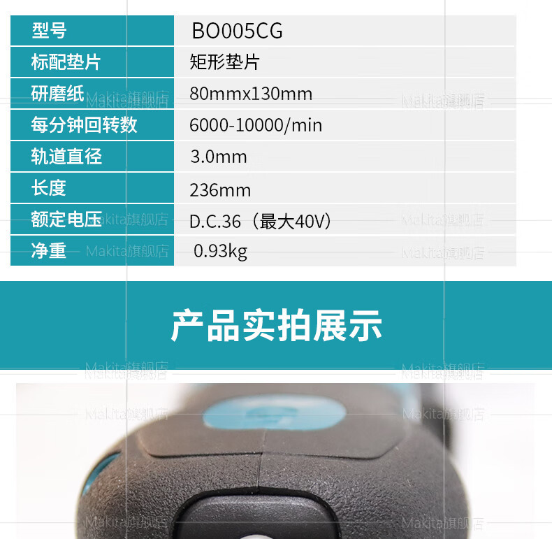 Makeda Makeda BO005 placa de carga orbita lijadora lijadora plana sin escobillas 80 × 130mm BO005GZ
