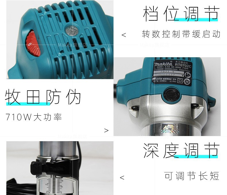 Muchieda Muchieda máquina de corte de bordes máquina de tallado de carpintería DIY molino de madera eléctrico función de inversión ajustable herramienta eléctrica RT070