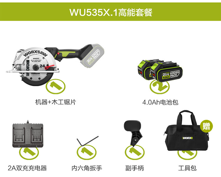 WIX 20V sin escobillas sierra circular eléctrica de litio WU535X herramientas eléctricas de carpintería portátil recargables [metal desnudo sin