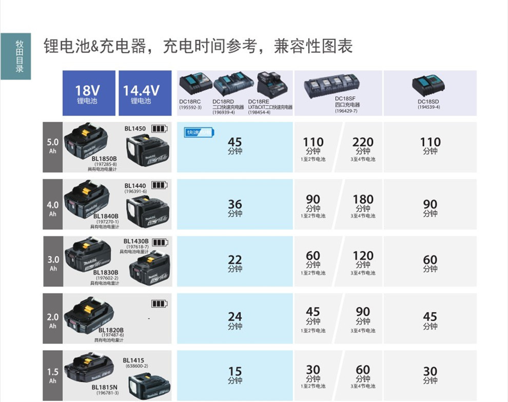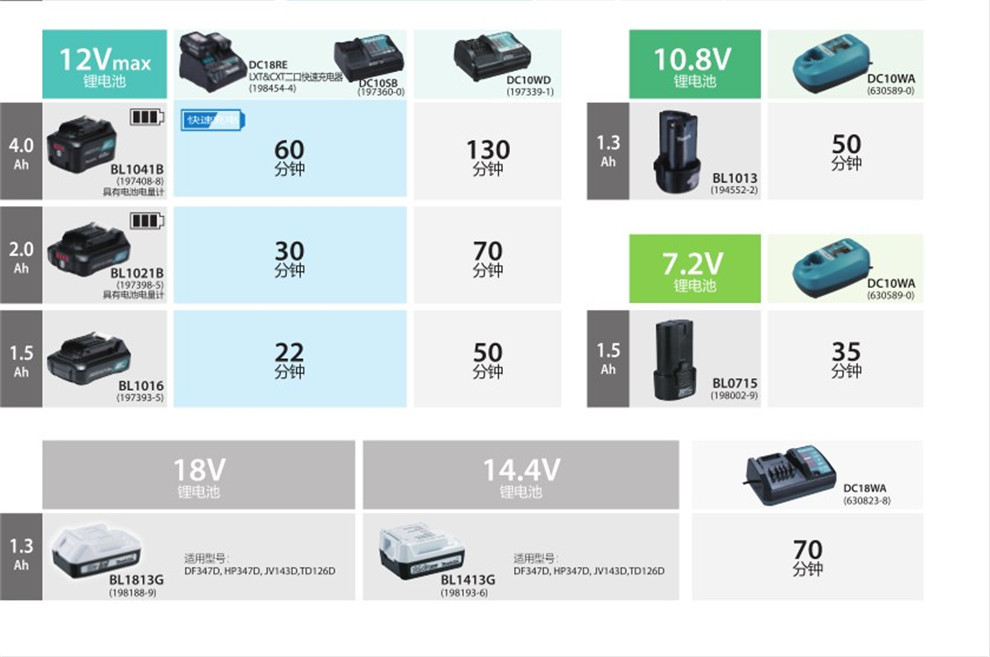 | Modelo | Pantalla de batería de litio BL1430B 3.0Ah, batería de litio牧田 BL1415N 1.5Ah, pantalla de batería de litio con carga de litio BL1440 4.0Ah, batería de litio牧田 BL1413G 1.3Ah |