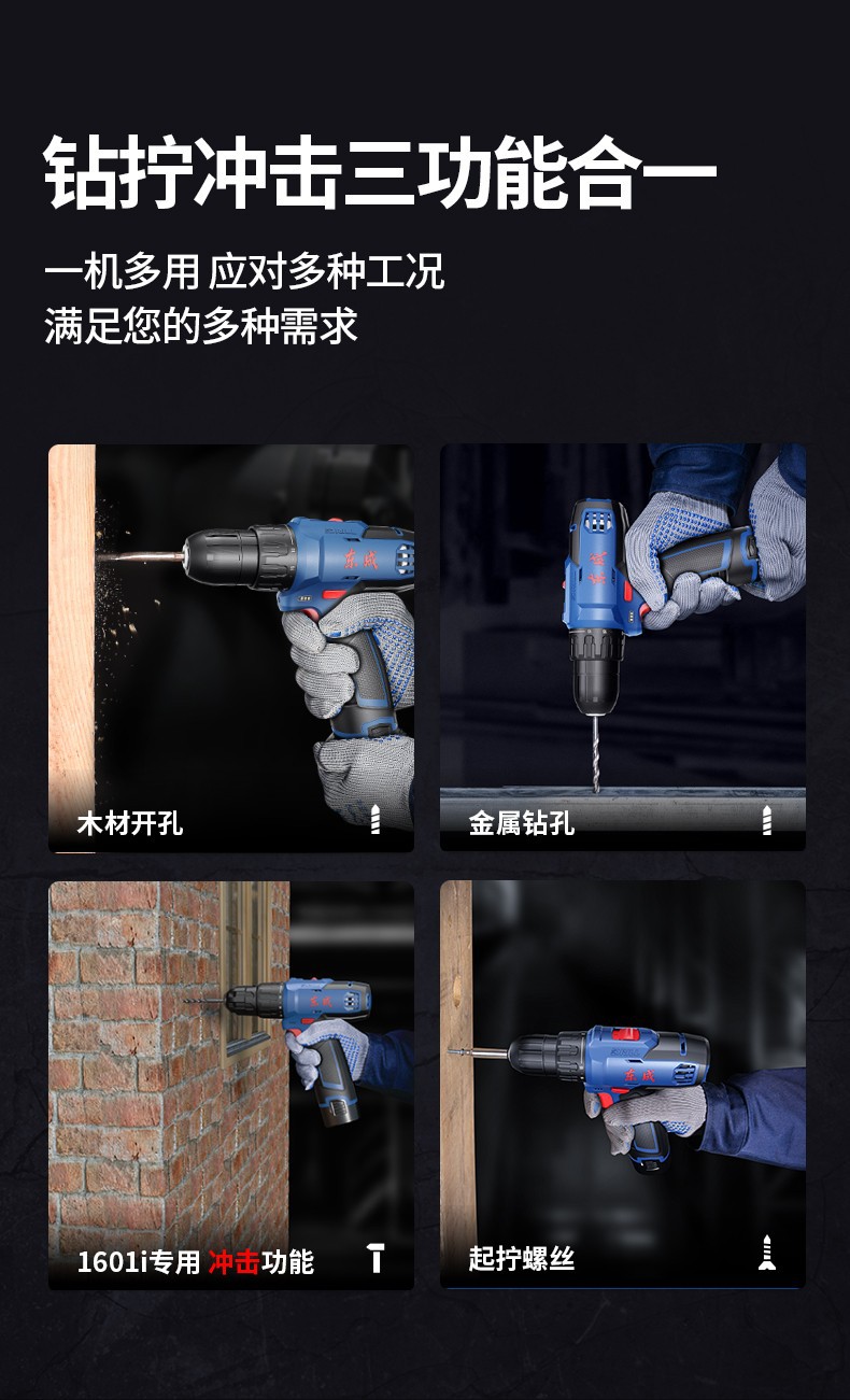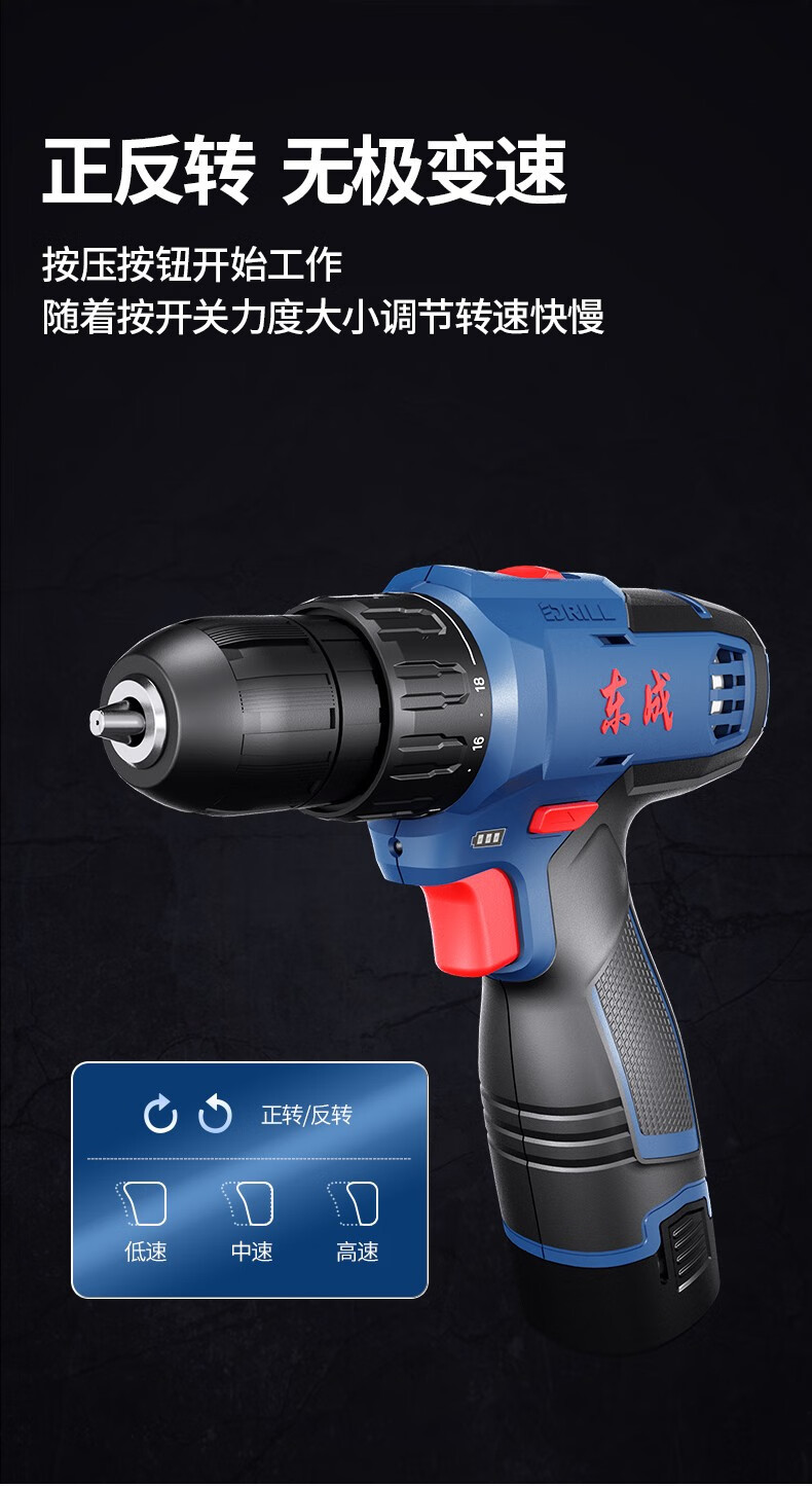 Dongcheng perforador eléctrico destornillador eléctrico 16V recargable multifuncional doméstico rodante pequeño taladro de pistola Dongcheng litio mano eléctrica