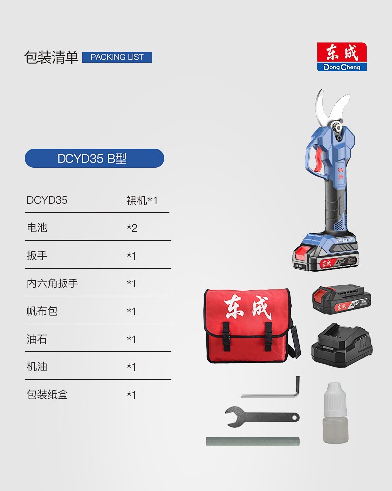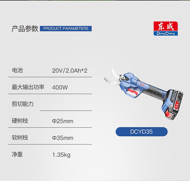 | Especificaciones | DCYD35 (B) cortadora de ramas 20V dos 2.0Ah, DCYD35Z cortadora de ramas metal desnudo sin electricidad sin carga |