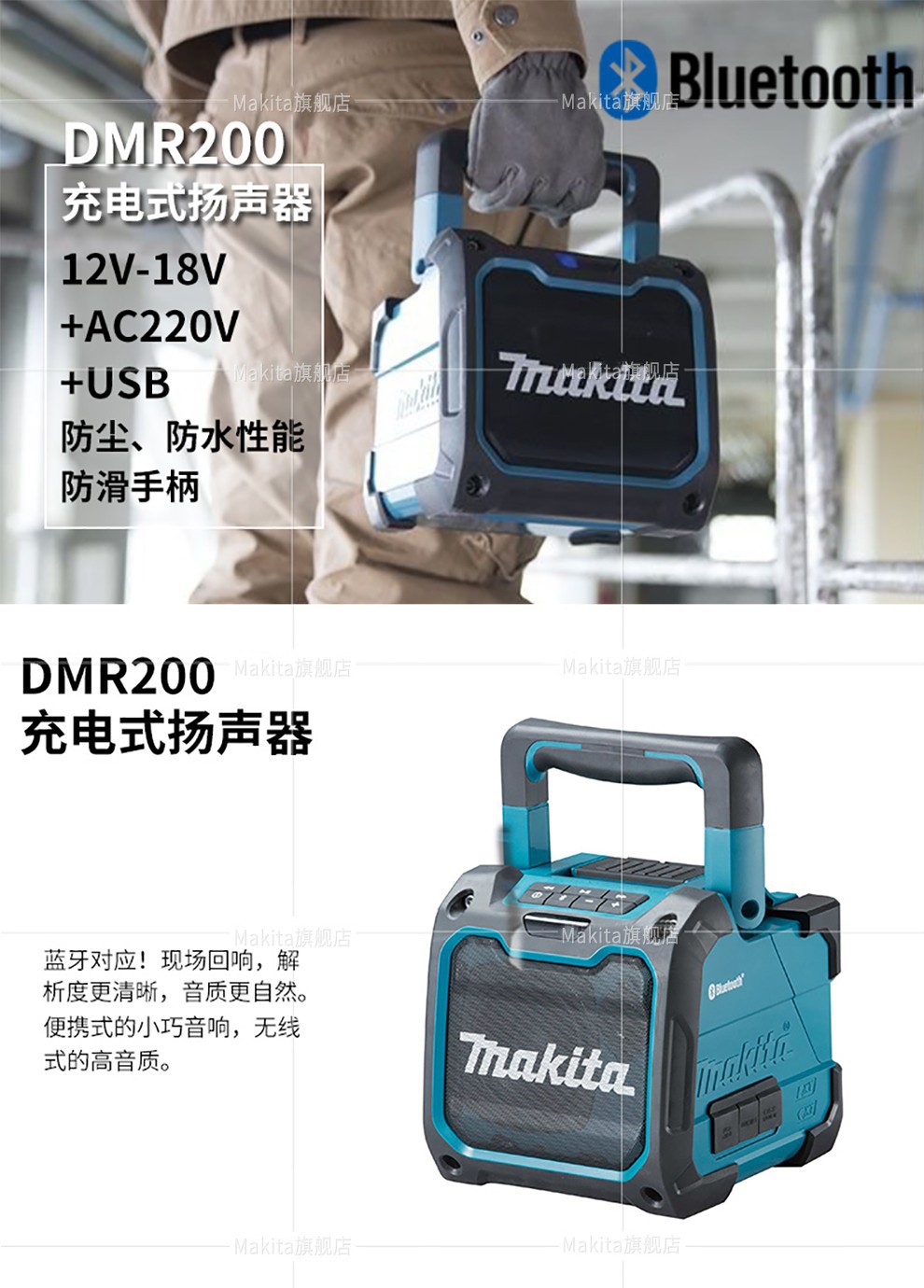 Makeda Japón Makeda 18V radio altavoz Bluetooth reproductor de música portátil DMR202 sonido eléctrico