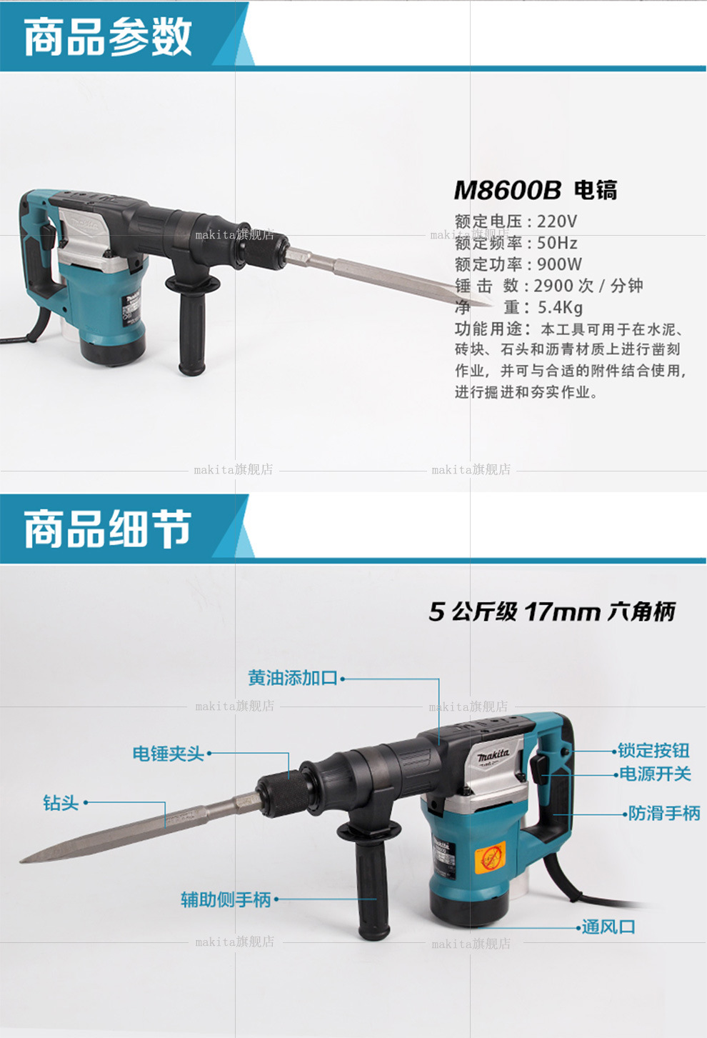 | Especificaciones y modelos | Pico eléctrico + cincelador, pico eléctrico m8600 |