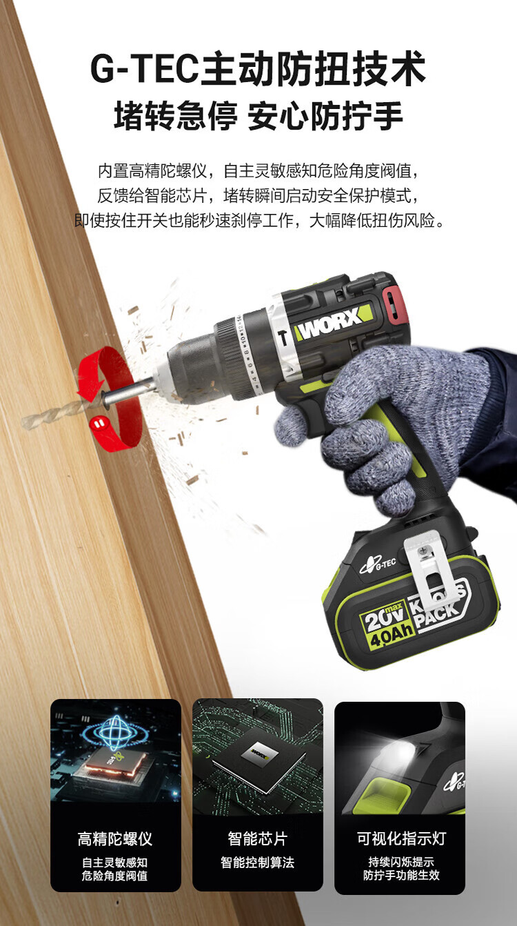 WEX WORX WU373 taladro de impacto sin escobillas (dual electricidad) taladro de mano batería de litio taladro de pistola perforación de pared