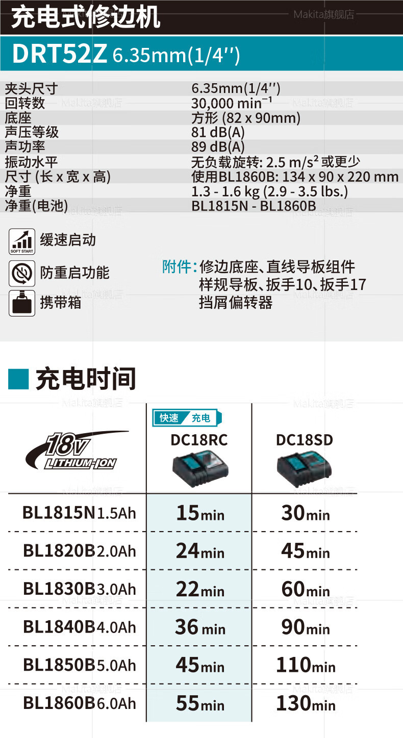 Makeda Makeda máquina de grabado de litio DRT52 recargable carpintería 18V máquina de grabado de litio 6 mm o 1 / 4 "