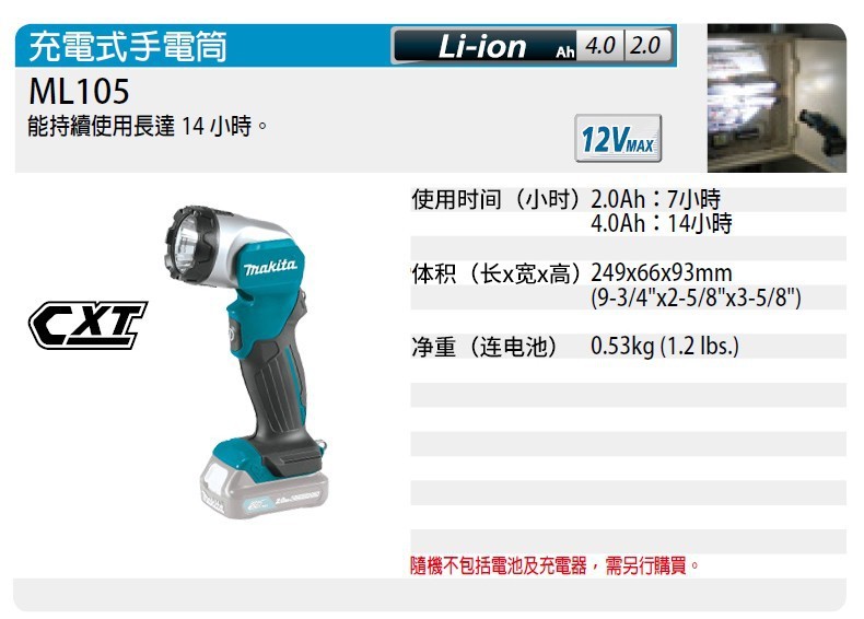 | Especificaciones | Ml104 lámpara fluorescente LED sin cargador de batería, ml104 lámpara fluorescente LED sin carga rápida de carga única 1.5ah, ml104 lámpara fluorescente LED sin carga rápida de carga única 2.0ah, ml104 lámpara fluorescente LED sin carga rápida de carga única 4.0ah, ml104 lámpara fluorescente LED sin cargador de batería, ml104 lámpara fluorescente LED sin batería, ml104 lámpara fluorescente LED sin carga rápida de carga doble carga rápida 2.0ah, ml104 lámpara fluorescente LED sin batería, Ml105 recarga rápida de linterna LED de carga única 1.5ah, ml105 recarga rápida de linterna LED de carga única 2.0ah, ml105 recarga rápida de linterna LED de carga única 4.0ah, ml105 recarga rápida de linterna LED de carga doble 1.5ah, ml105 recarga rápida de linterna LED de carga doble 2.0ah, ml105 recarga rápida de linterna LED de carga doble 4.0ah, ml106 recarga rápida de Linterna LED sin cargador de batería, ml106 recarga rápida de linterna LED de carga única 1.5ah, ml106 recarga rápida de linterna LED de carga única 2.0ah, ml106 recarga rápida de linterna LED de carga única 4.0ah, ml106 recarga rápida de linterna LED de carga única linterna LED doble carga rápida 1,5ah, linterna LED de carga ml106 doble carga rápida 2,0ah, linterna LED de carga ml106 doble carga rápida 4,0ah |