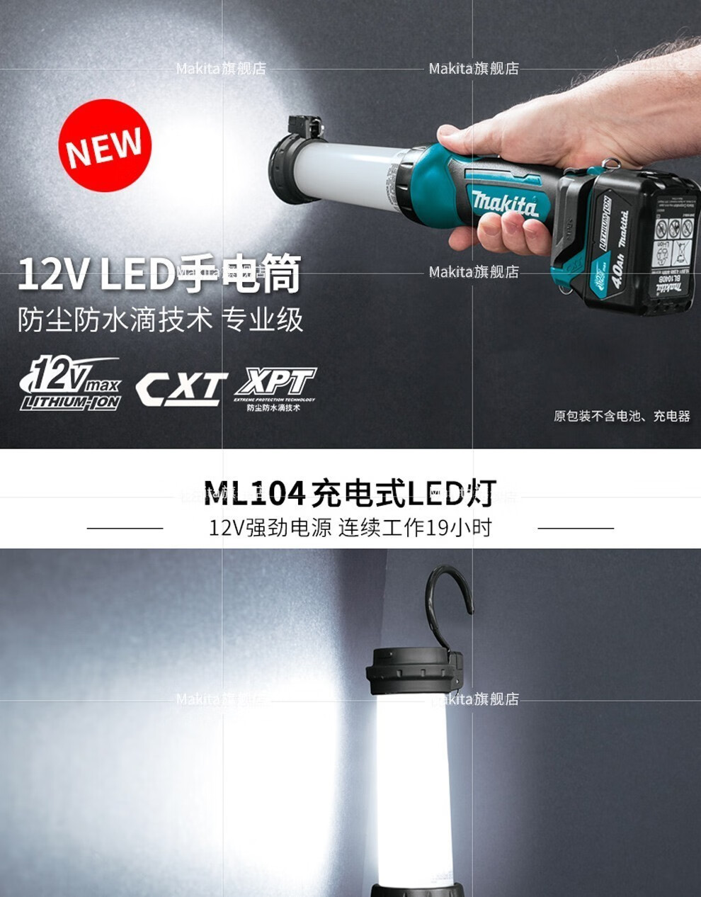 Makida pre-venta Makida 12V lámpara fluorescente de carga de litio iluminación linterna LED al aire libre ML104 trabajo eléctrico