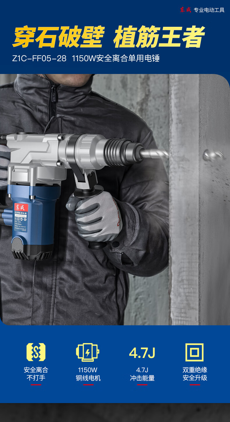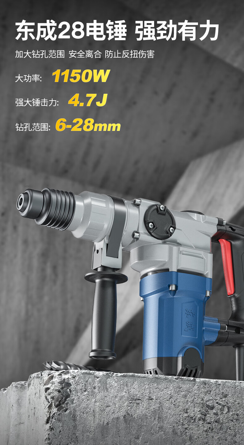 Dongcheng seguridad de un solo embrague martillo eléctrico 1150W taladro de impacto de alta potencia herramienta eléctrica de hormigón Z1C-FF05 -