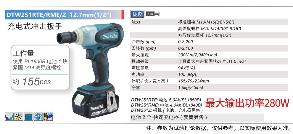 | Modelo | Llave de impacto de carga dtw251rfe 3.0ah, llave de impacto de carga dtw251rme 4.0ah, llave de impacto de carga dtw251rte 5.0ah, cargador de batería de llave de impacto dtw251z se vende por separado. |