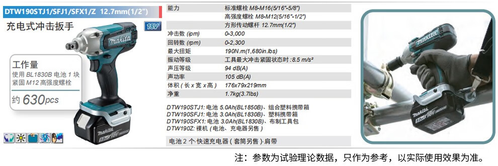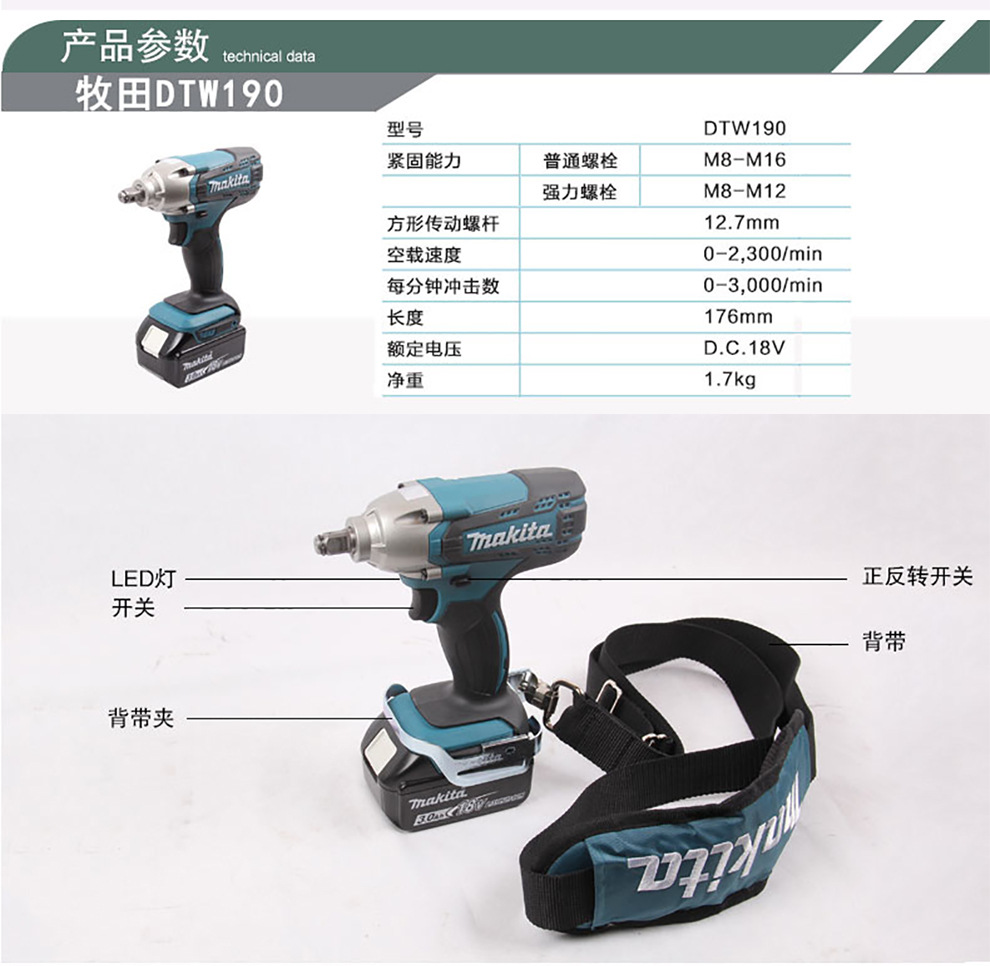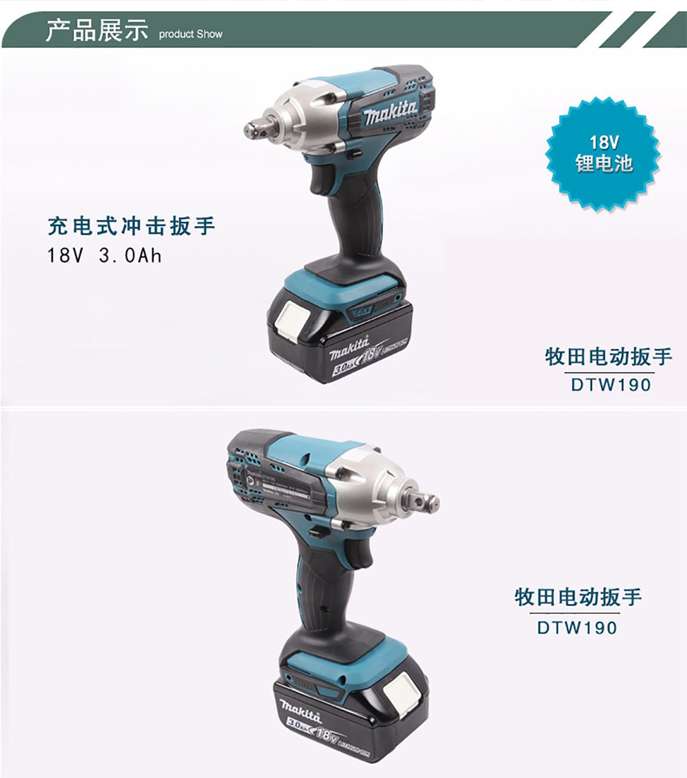 | Modelo | DTW190 una caja de carga eléctrica 3.0ah, DTW190STJ1 una caja de carga eléctrica 5.0ah, DTW190SMJ1 una caja de carga eléctrica 4.0ah, DTW190SGJ1 una caja de carga eléctrica 6.0ah, DTW190STJ1 doble caja de carga eléctrica 5.0ah + conjunto de manga, DTW190SFJ1 dos caja de carga eléctrica 3.0ah, Machada DTW190Z llave de impacto cargada desnudo, DTW190SMJ1 dos caja de carga eléctrica 4.0ah, DTW190STJ1 dos caja de carga eléctrica 5.0ah, DTW190SGJ1 dos eléctricos y una caja de plástico 6.0ah |
