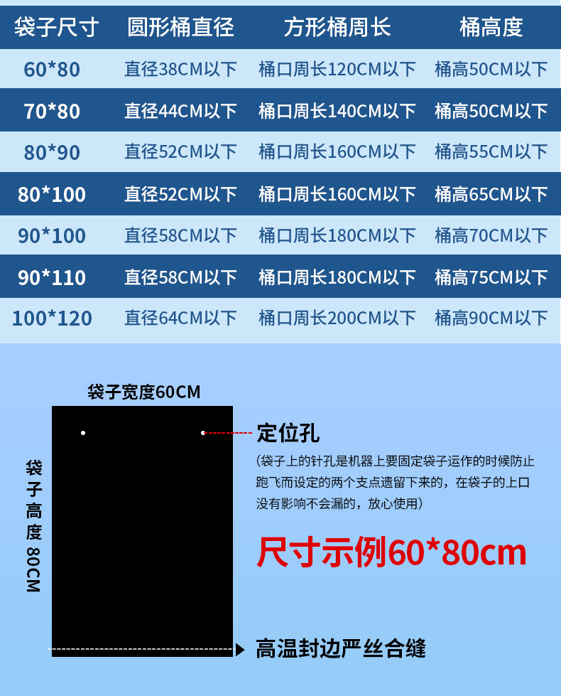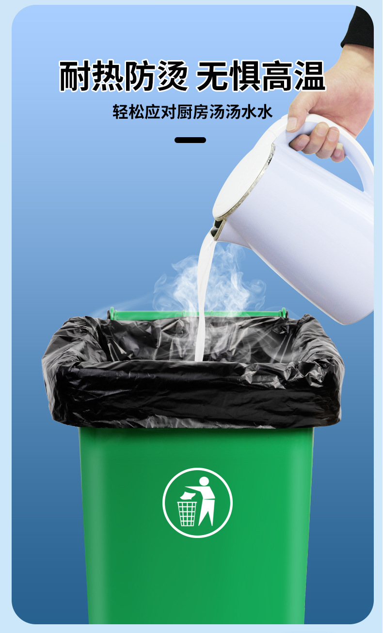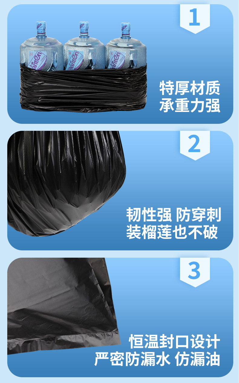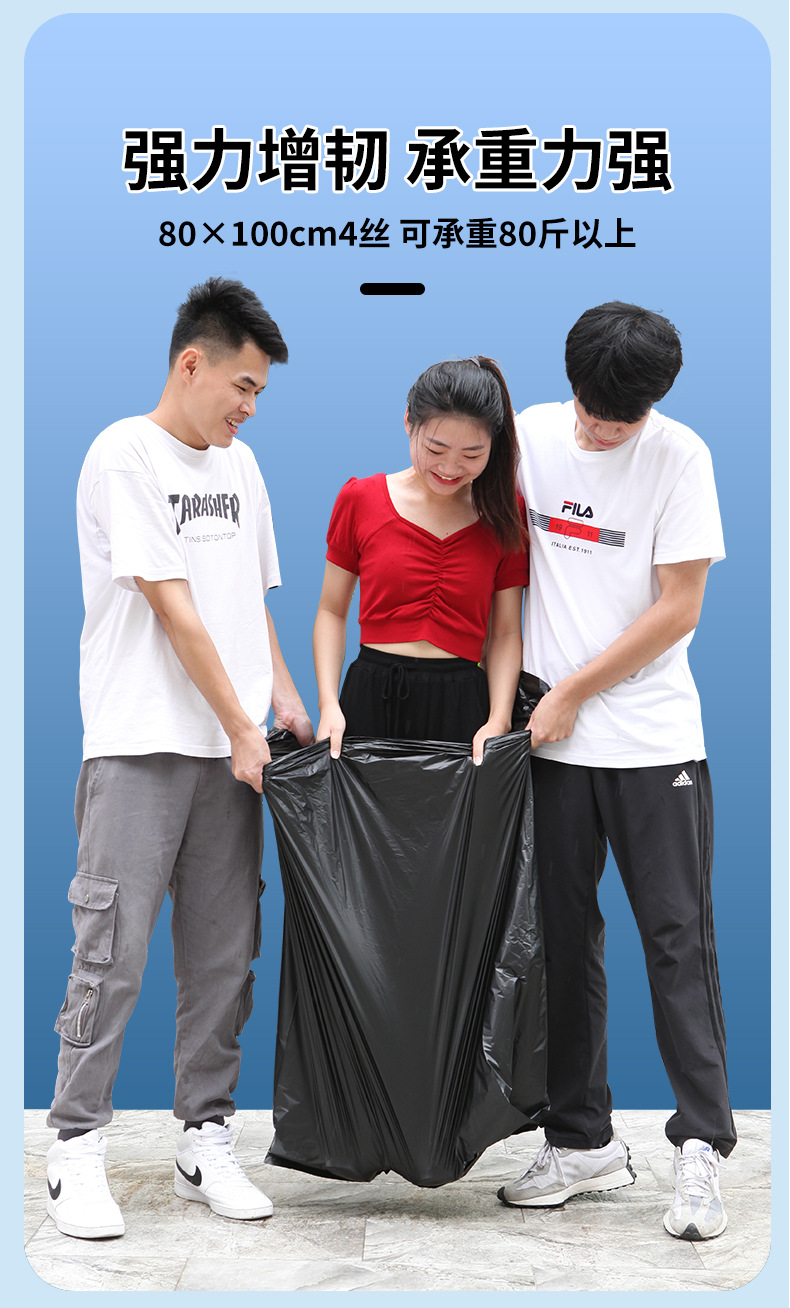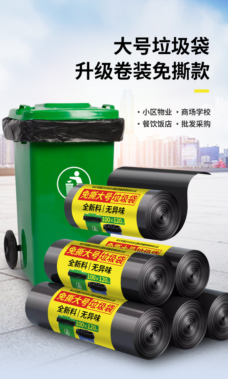 Gran bolsa de basura grande grosor extra negro propiedad hotel extra grande bolsa de plástico extra gruesa boca plana para comer comercial