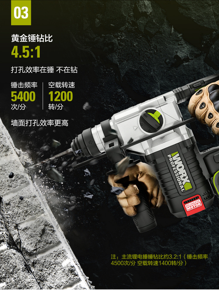 WORX WU388 20V martillo eléctrico de litio sin escobillas picador eléctrico hardware