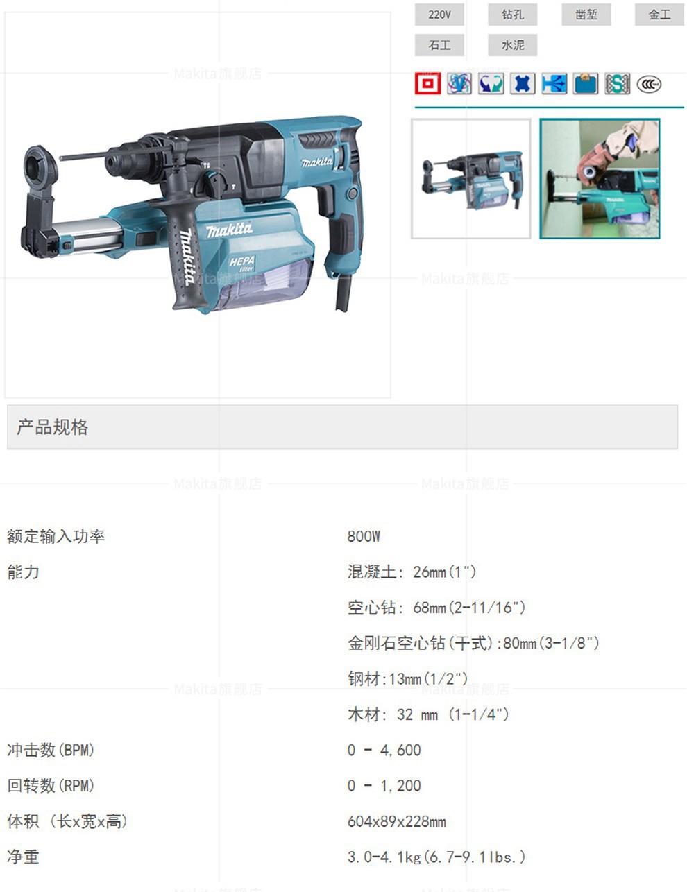 | Modelo | Pastoral hr2653j martillo eléctrico (amortiguación) con recolección de polvo, pastoral hr2652j martillo eléctrico (26mm) con recolección de polvo |