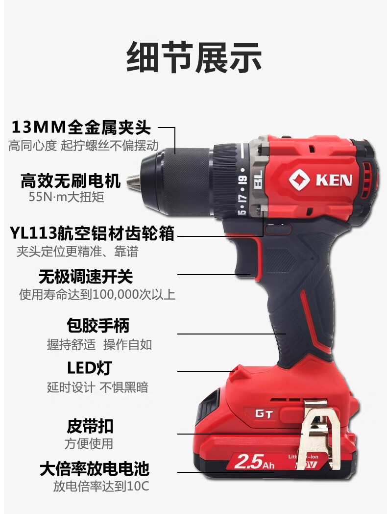 Ruichi KEN Ruichi 7220 taladro de carga sin escobillas taladro de mano destornillador eléctrico de gran torque taladro de litio eléctrico 20V eléctrico