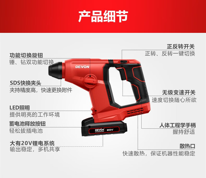 20V martillo eléctrico ligero sin escobillas de litio 5403 martillo industrial multifuncional de concreto doméstico
