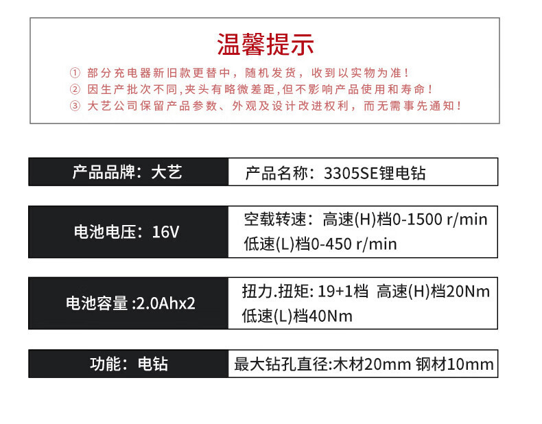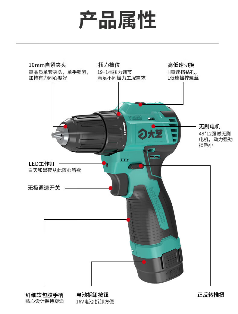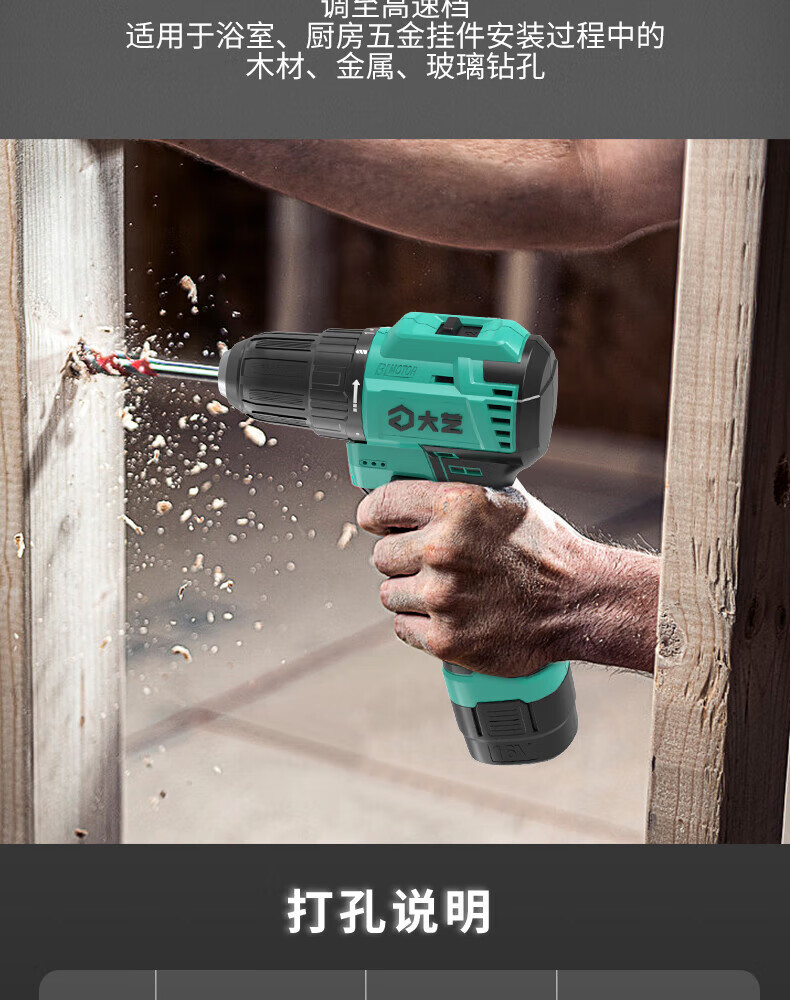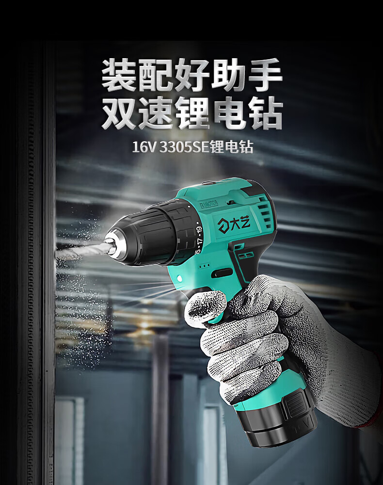 Dayi taladro de carga sin cepillo taladro de mano industria doméstica doble uso de doble velocidad taladro de mano multifuncional de litio 3305