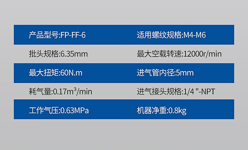 | Modelo | Destornillador neumático de impacto fpff - 6, destornillador neumático de impacto fpff - 8 |