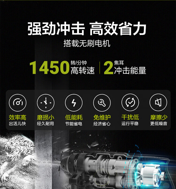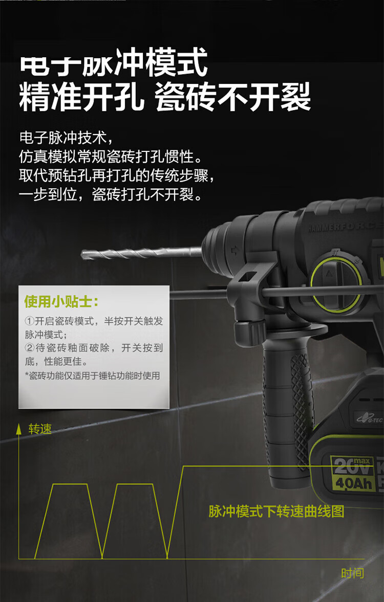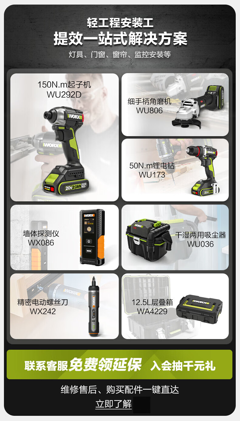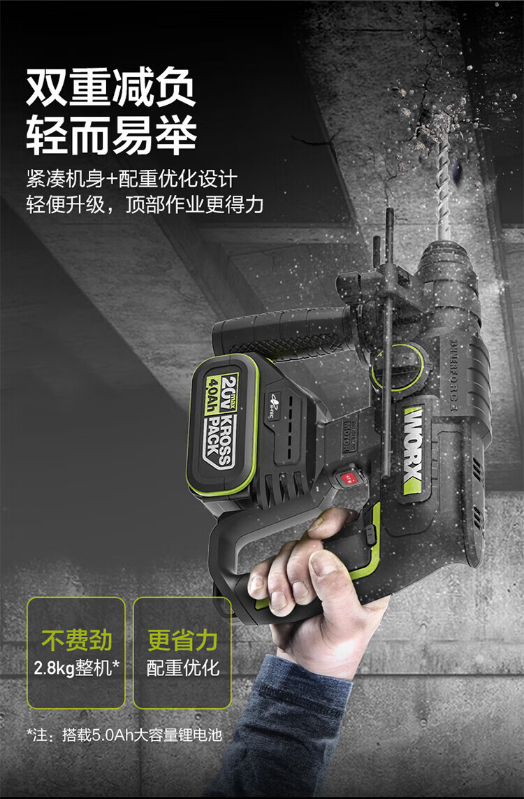 WEX WORX WU387.9 martillo de carga sin escobillas de doble propósito batería de hormigón perforación de impacto
