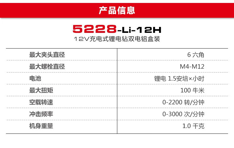 | Modelo | 5228 conjunto de cartón eléctrico único, 5228 conjunto de cartón eléctrico doble, 5228 conjunto de cartón plástico eléctrico único [regalo], 5228 conjunto completo de cartón eléctrico doble [paquete de regalo de gran valor], 5228 conjunto de edición conmemorativa eléctrico único [regalo], 5228 conjunto completo de cartón eléctrico doble [paquete de regalo de edición conmemorativa], 5228 metal desnudo [sin batería sin cargador], 5228 cuerpo + batería de litio 2.0AH, hay batería de litio 2.0AH [1], 5228 paquete de cartón eléctrico único asequible [1.5AH], 5228 caja de cartón eléctrica de doble paquete económico [1.5Ah] |