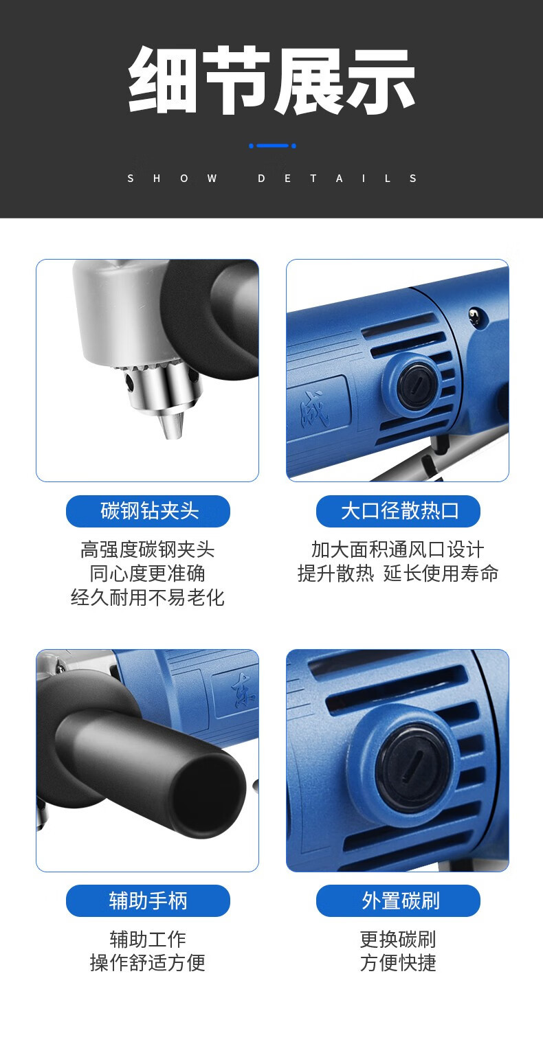 Dongcheng taladro eléctrico ángulo taladro de mano taladro de ángulo recto 90 grados taladro de codo herramienta eléctrica J1Z-FF06 - 10