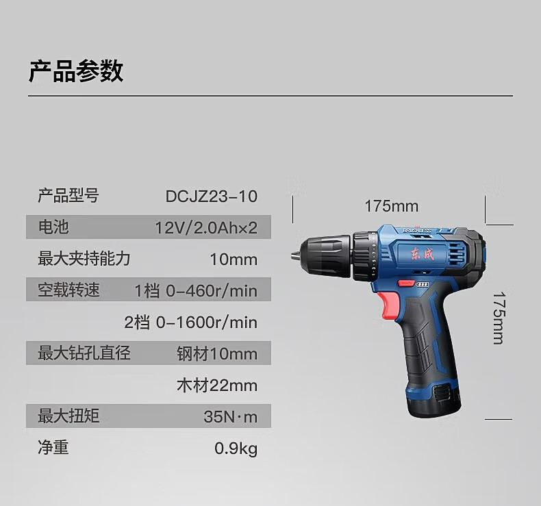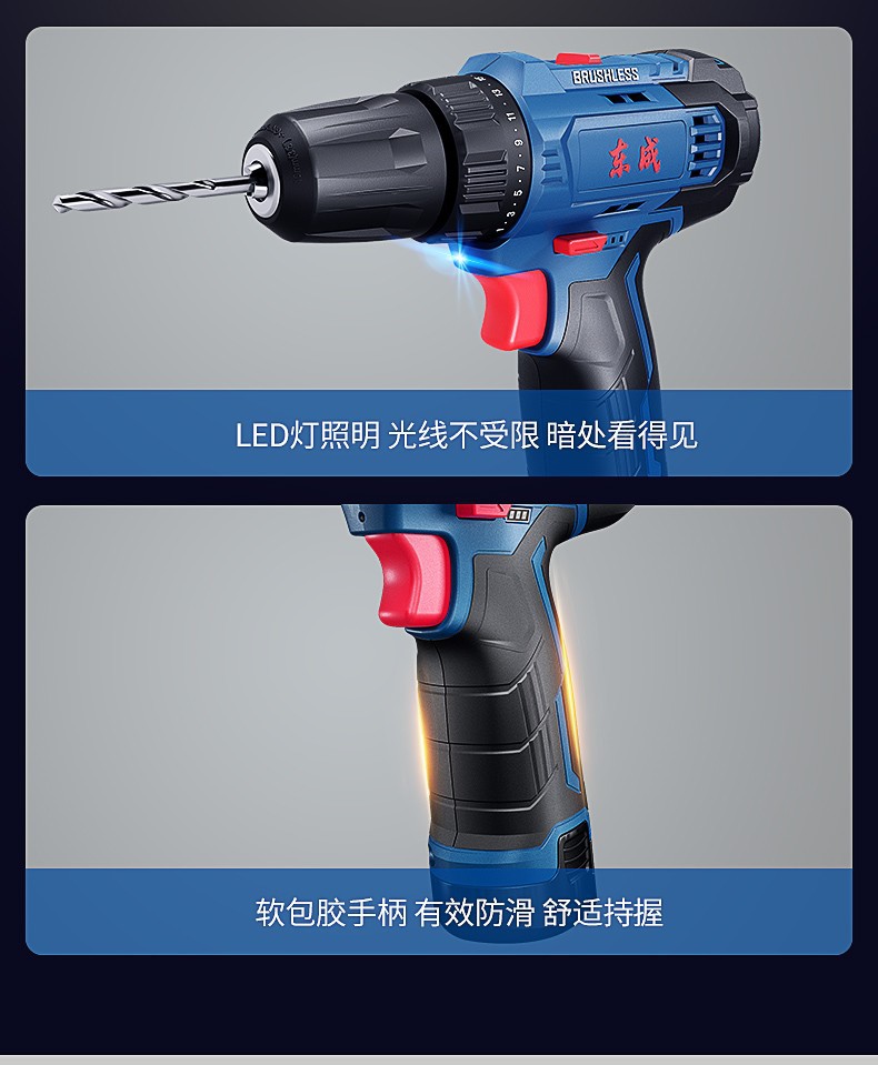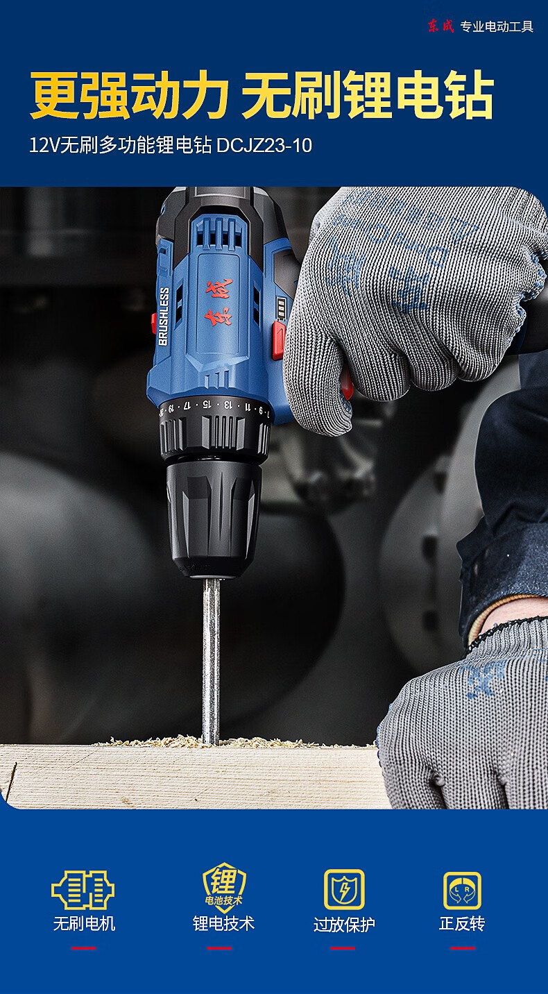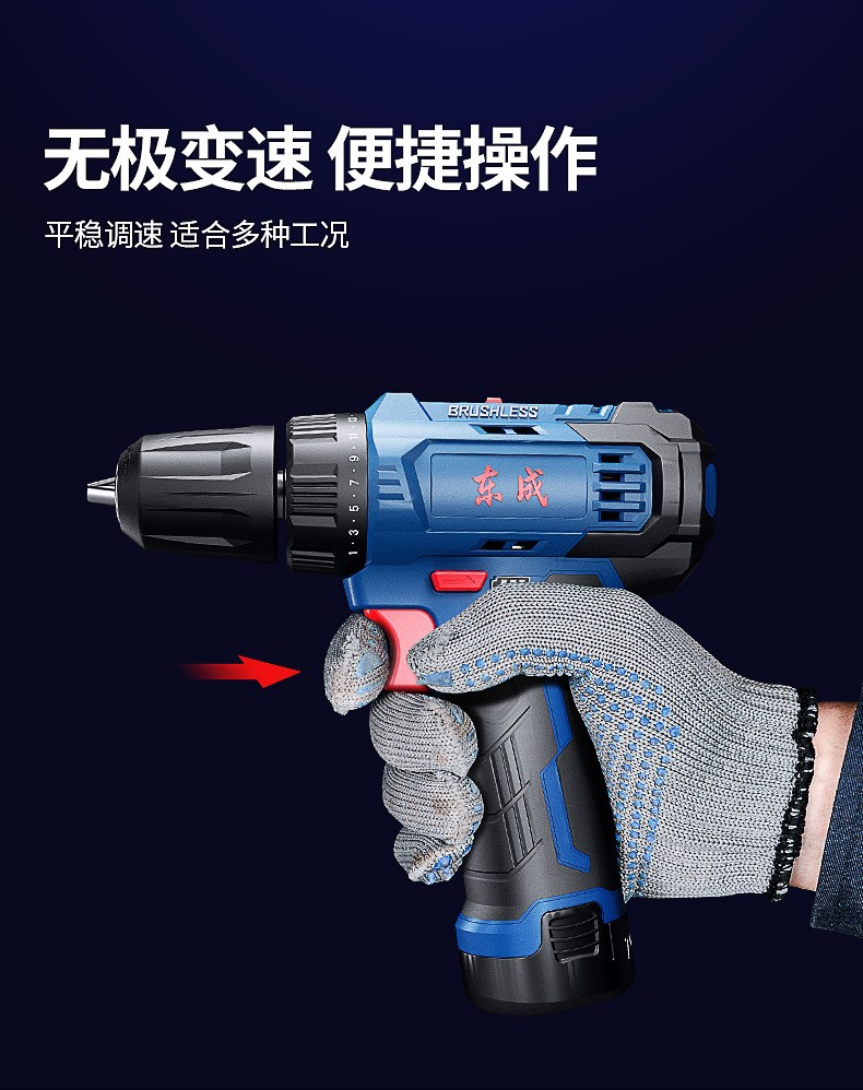 Dongcheng taladro de carga sin escobillas 12V taladro de mano eléctrico de doble velocidad Dongcheng taladro de mano eléctrico recargable destornillador eléctrico de litio