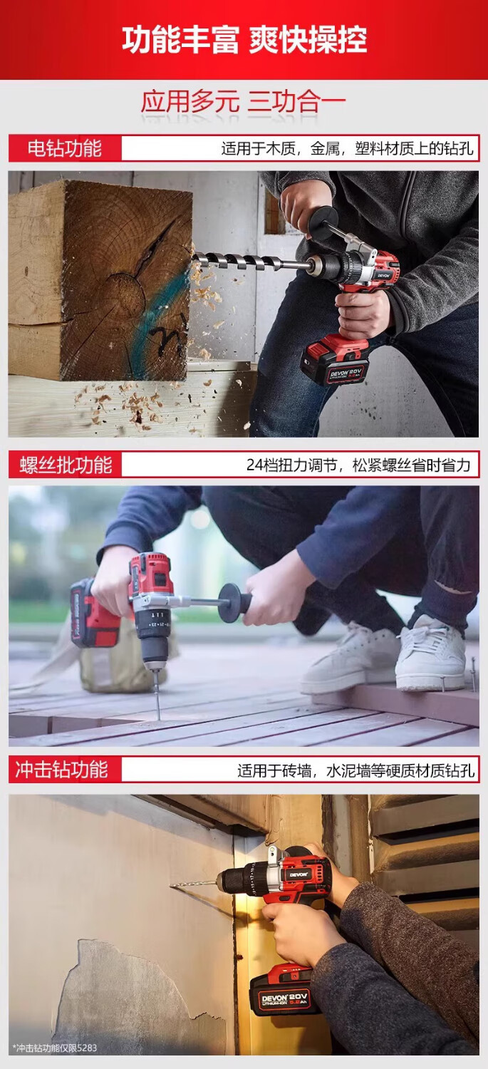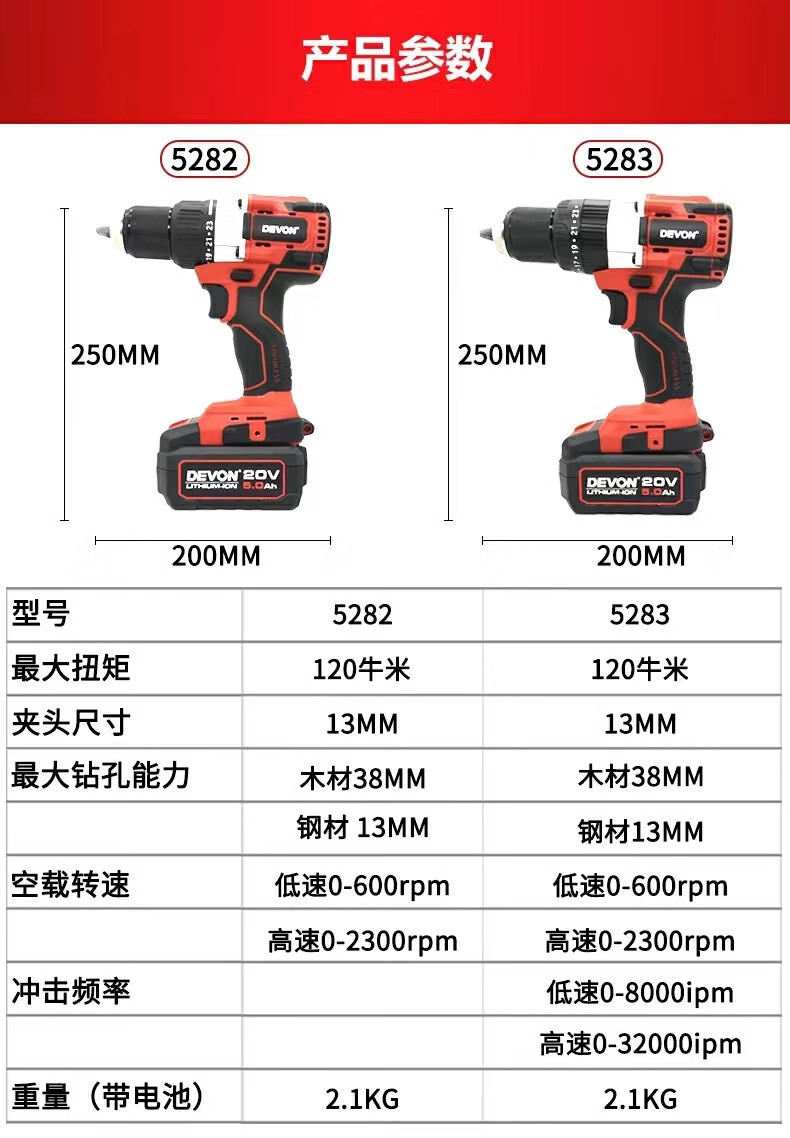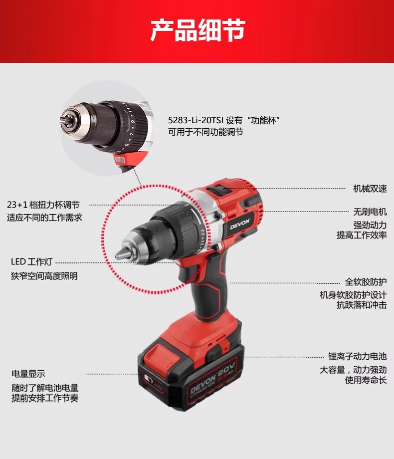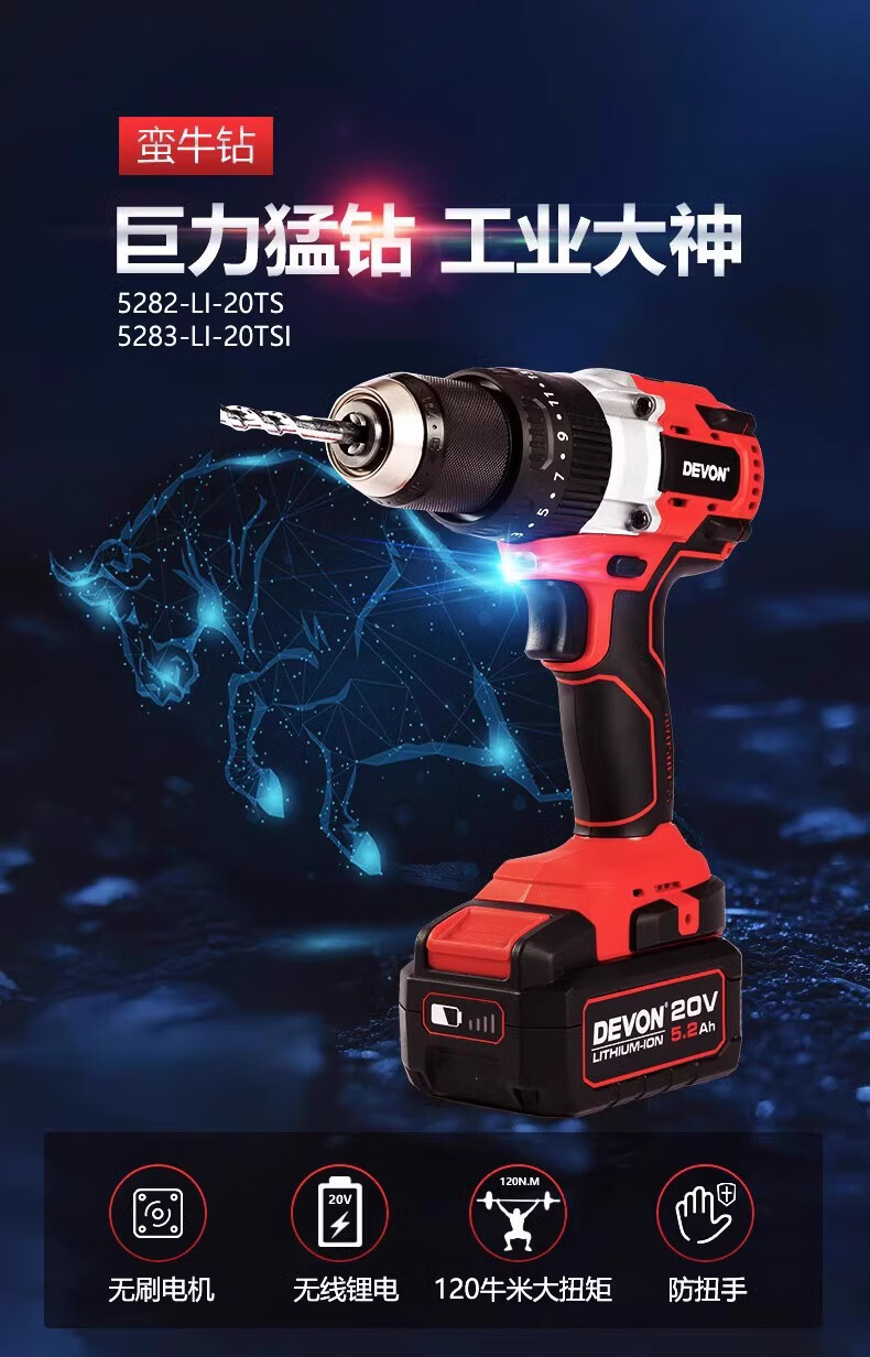 Gran taladro eléctrico de litio de 20V 5282 / 5283 taladro de carga sin escobillas multifuncional destornillador eléctrico de mano taladro de mano