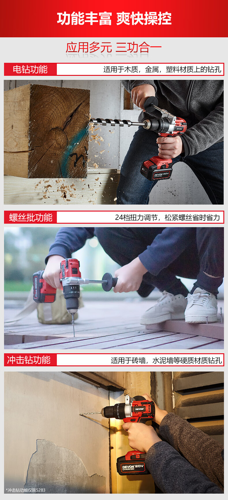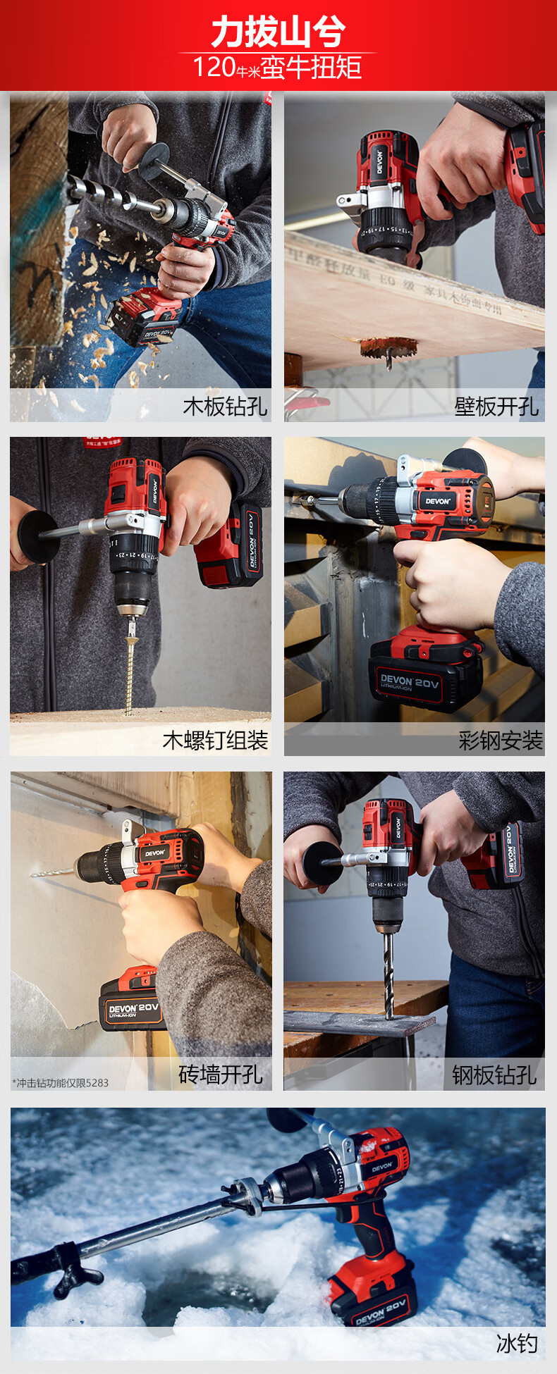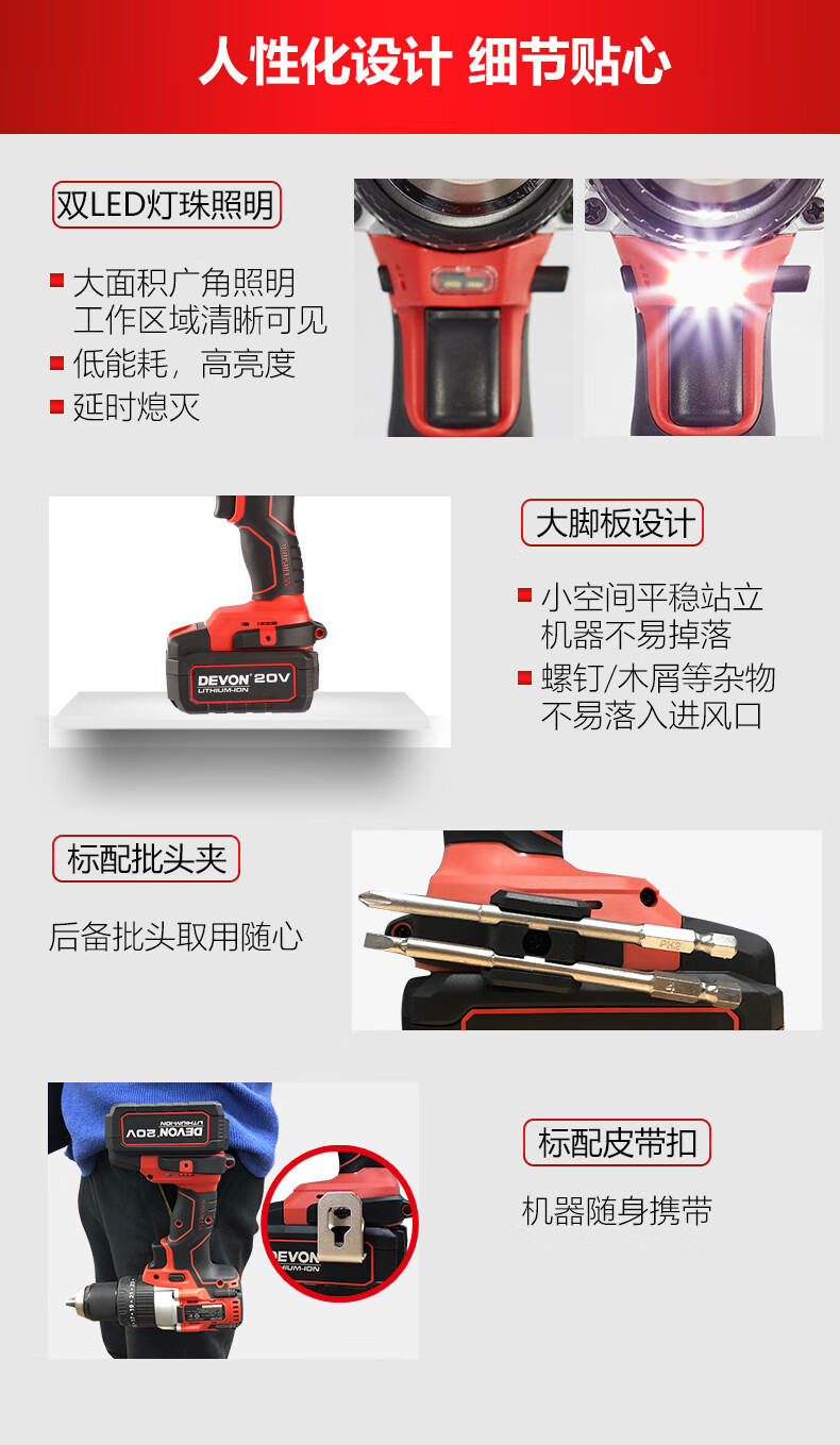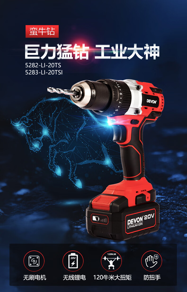 Gran litio (Devon) 20V taladro de impacto eléctrico sin escobillas 5283 multifuncional de grado industrial gran torsión de litio mano eléctrica