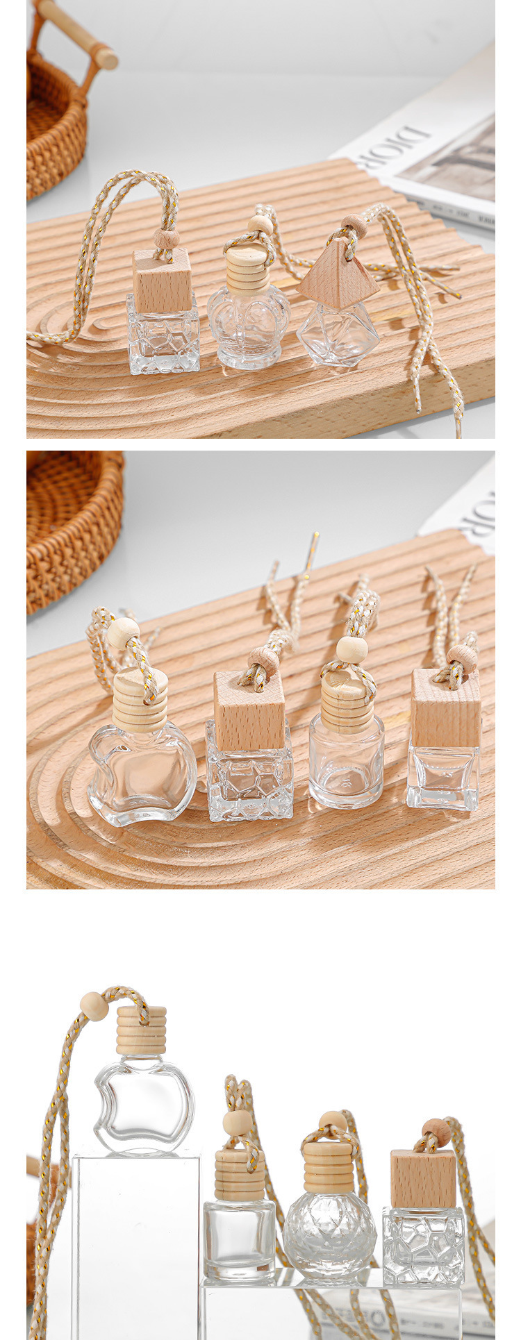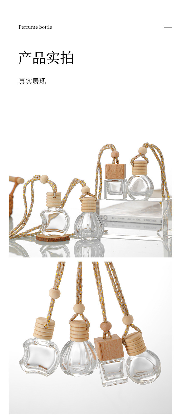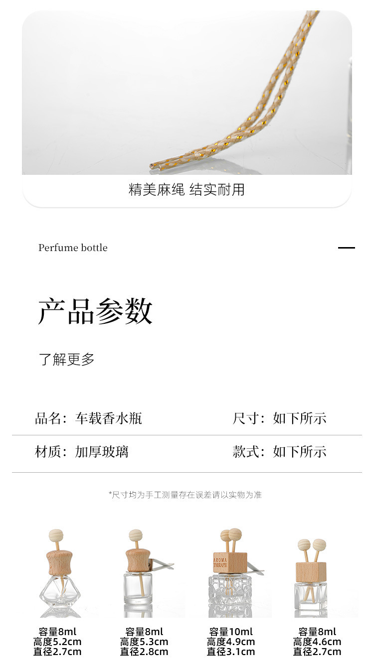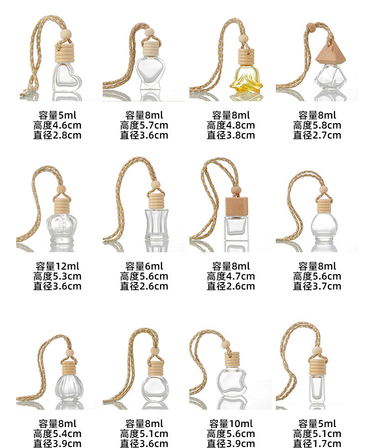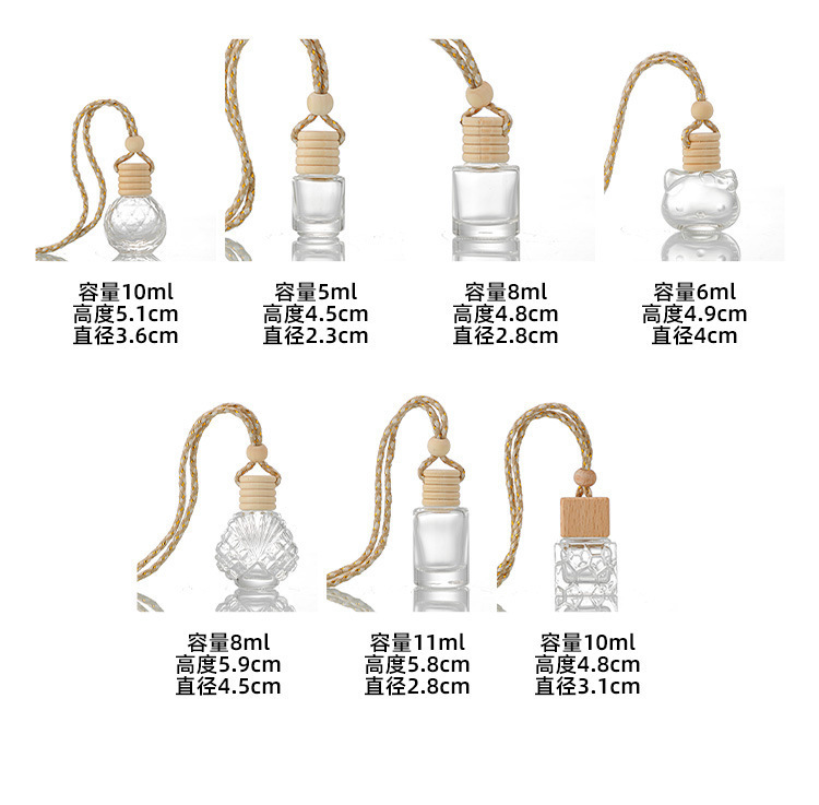 Botella de fragancia de 10ml de vidrio transparente colgante de fragancia botella vacía botella de fragancia de salida de aire del automóvil botella de fragancia de muestra pequeña botella