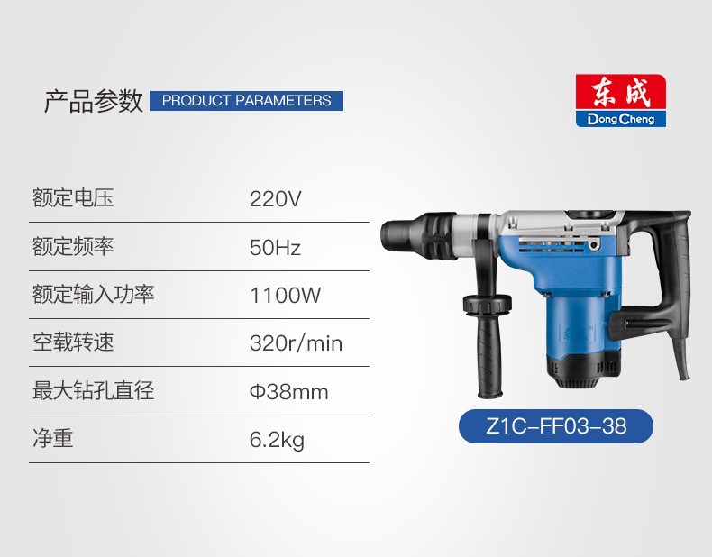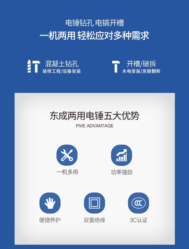 Dongcheng Wukeng martillo eléctrico de alta potencia picadora eléctrica taladro de impacto de hormigón de grado industrial taladro de martillo de doble propósito Z1C-FF03-3