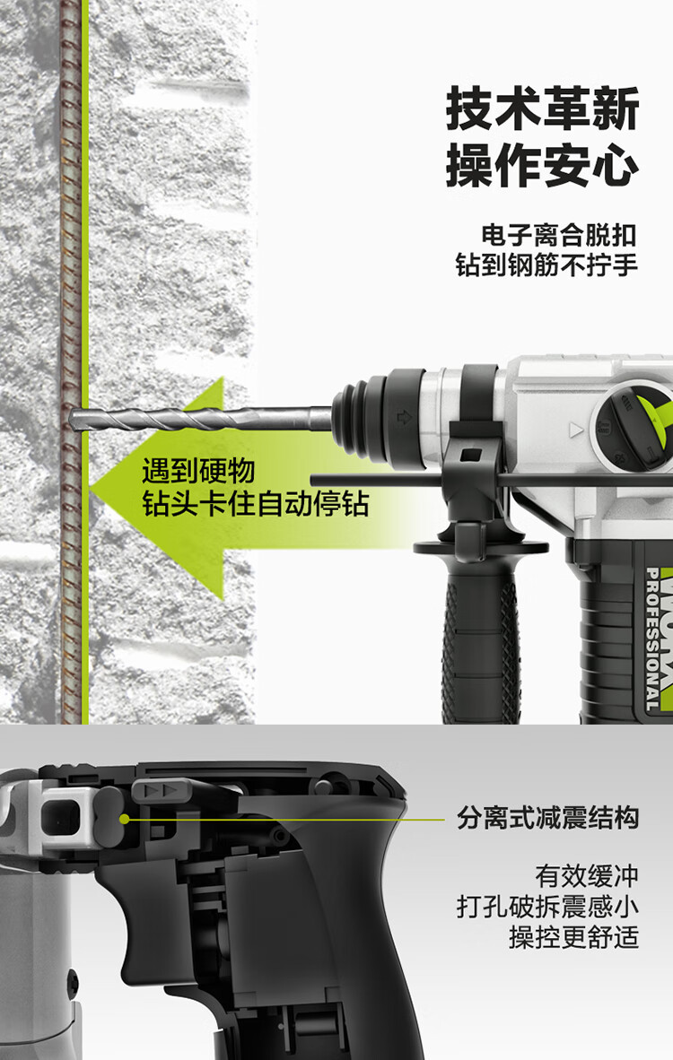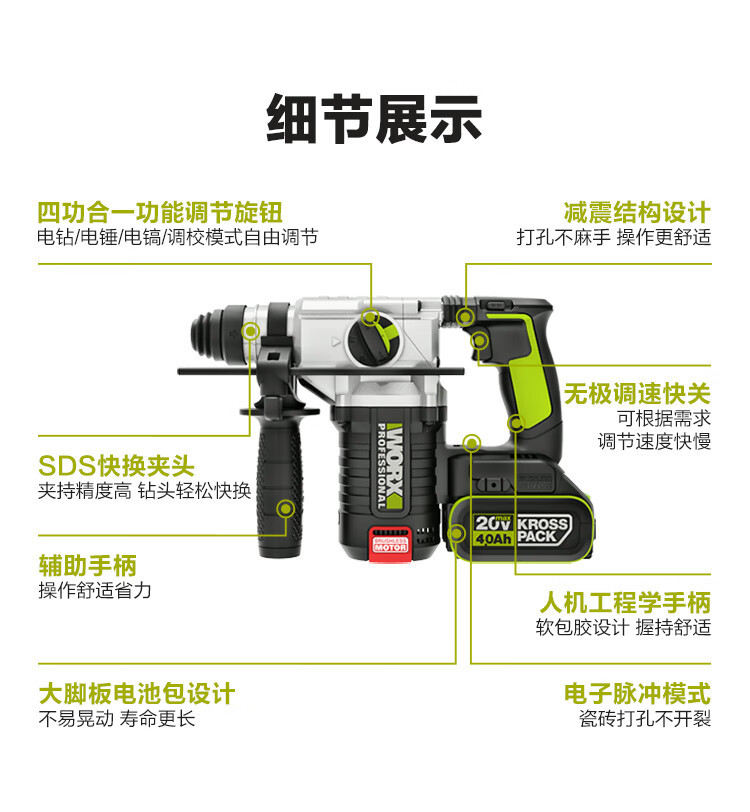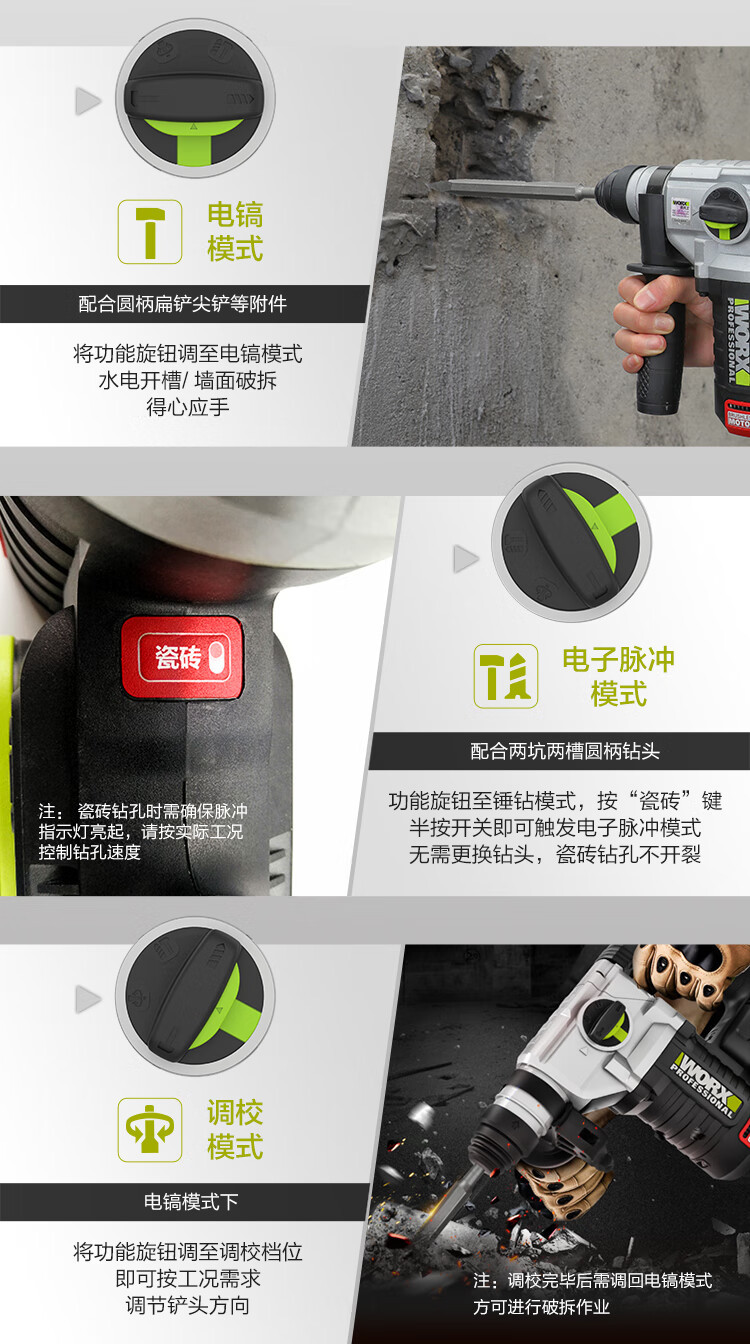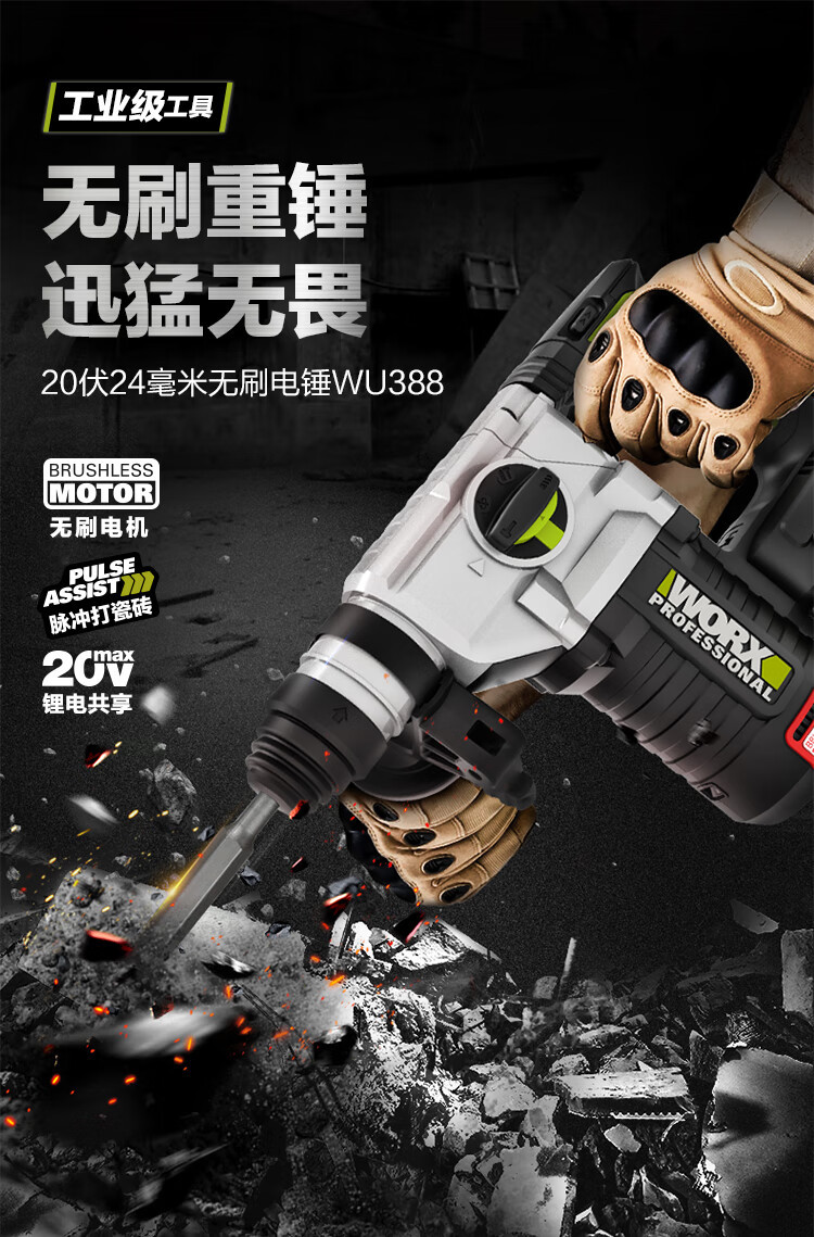 WIX WIX WU388 martillo eléctrico de litio sin escobillas perforador de impacto picador eléctrico recargable de alta potencia eléctrica de grado industrial