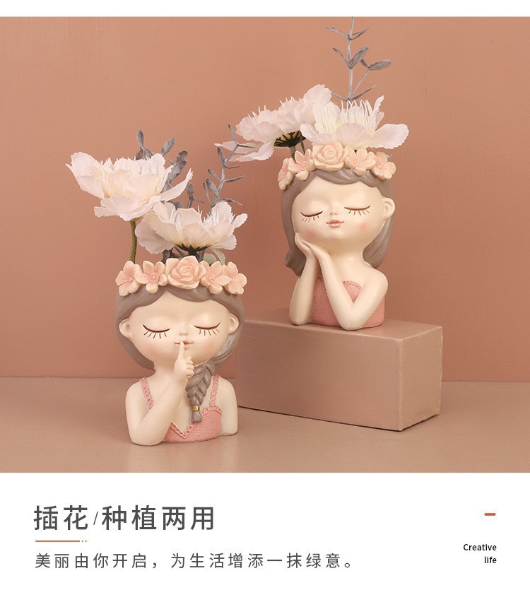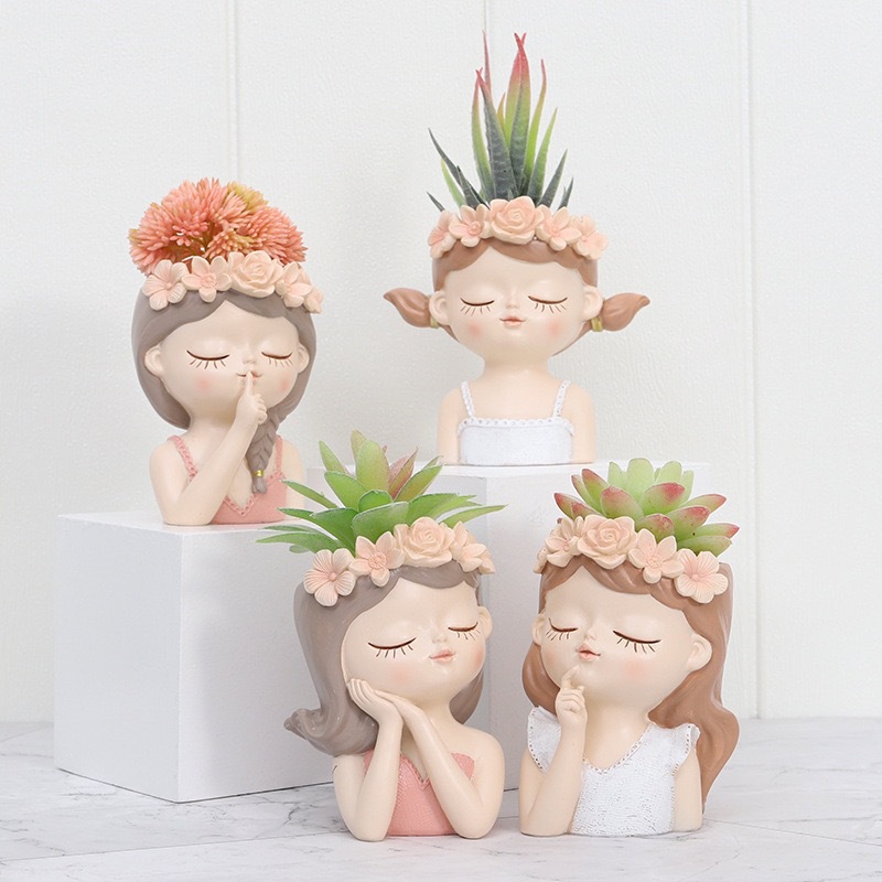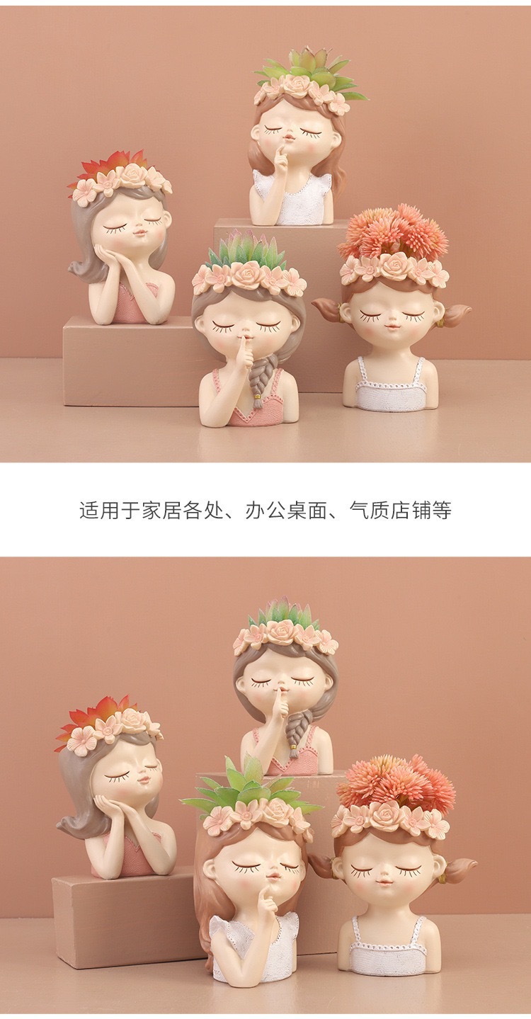 | Vaso de Chica Quieta | Pequeña plantación en maceta, artesanía de resina, adornos lindos hechos a mano |
