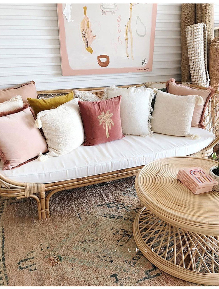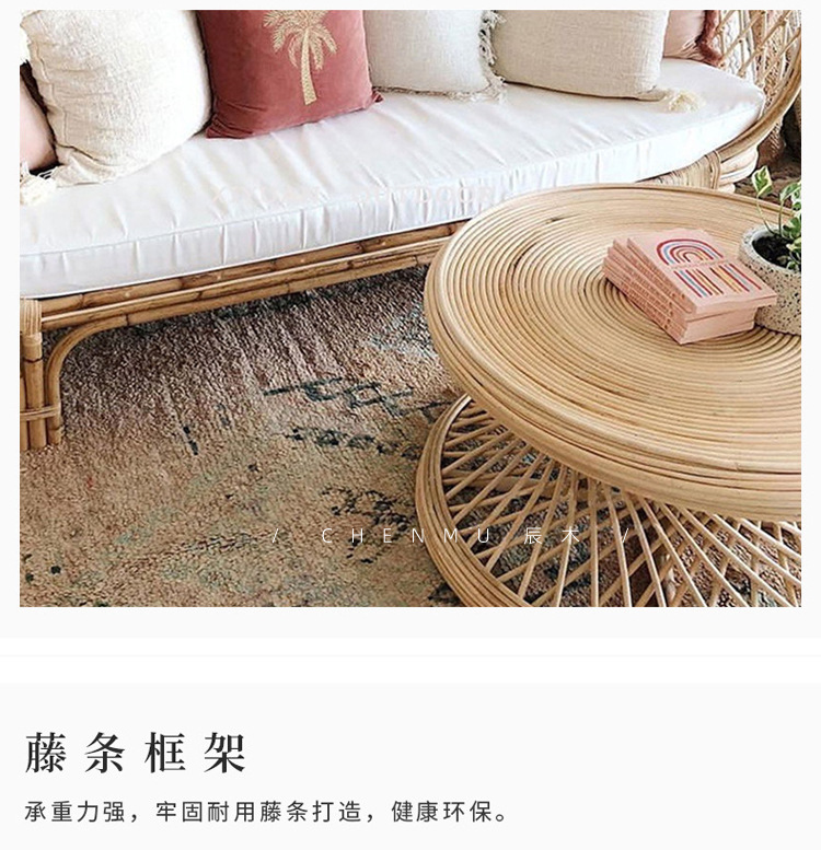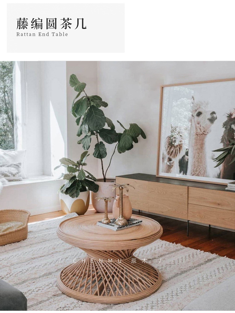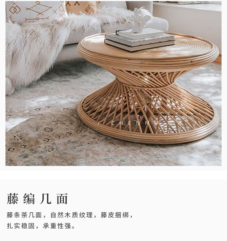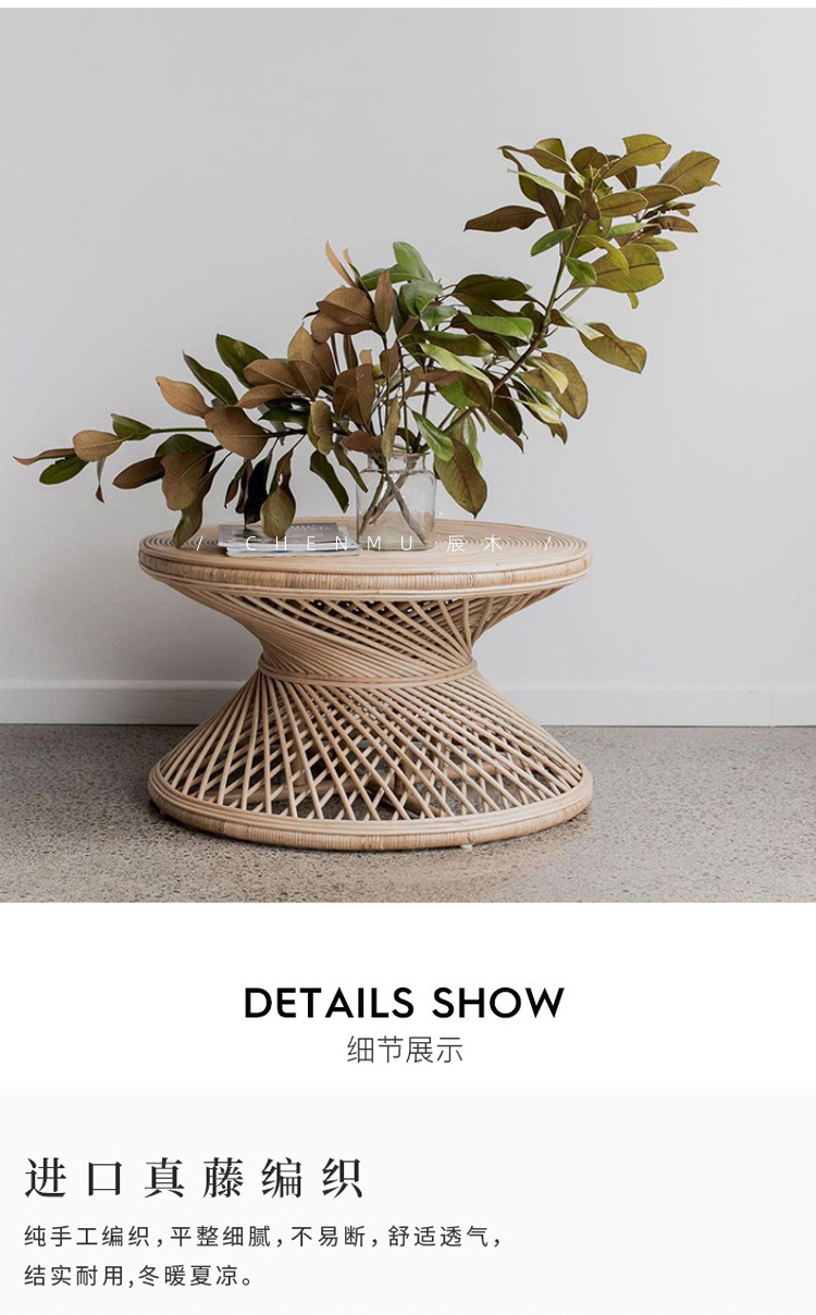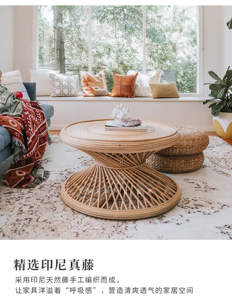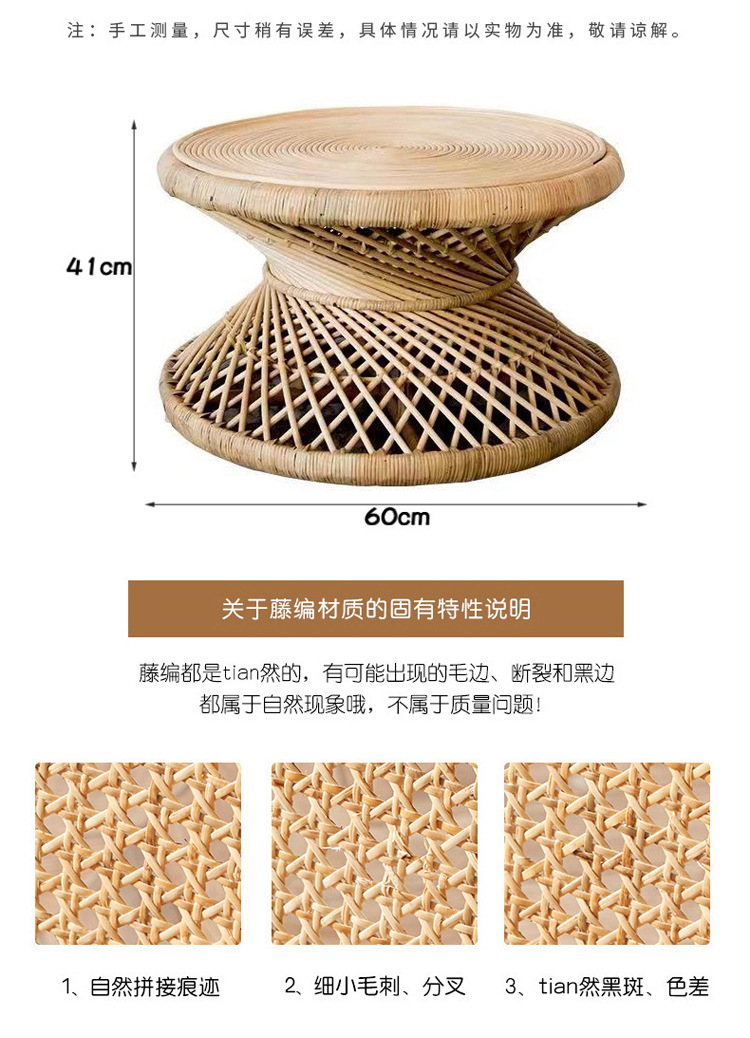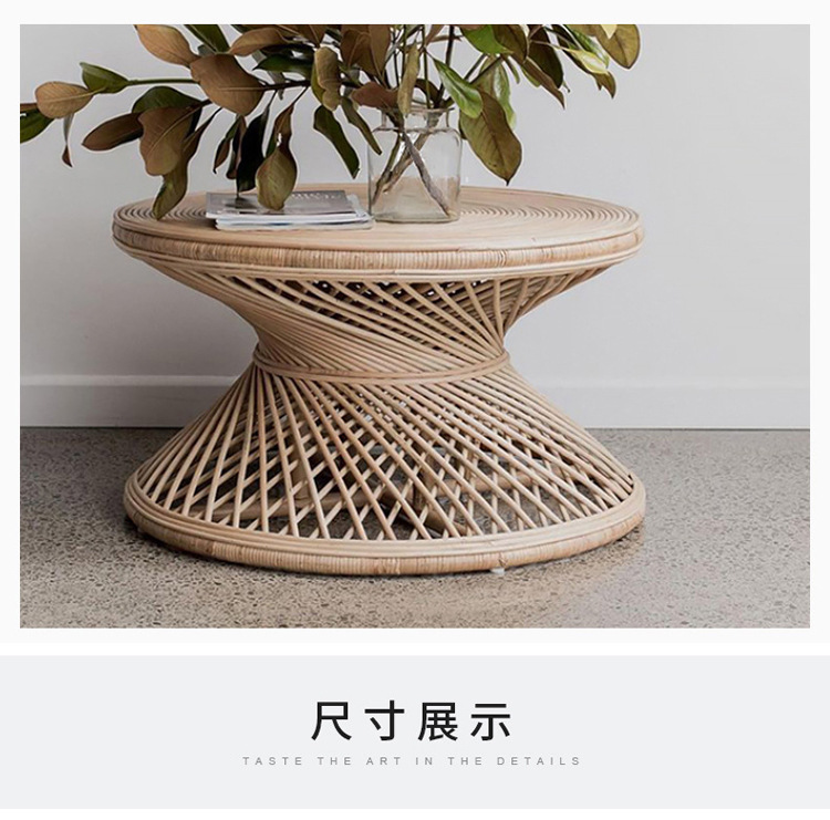 Ins verdadera mesa de té redonda de caña retro del sudeste asiático pequeña mesa redonda de estilo natural simple alojamiento de caña real redonda de caña varias casas pequeñas