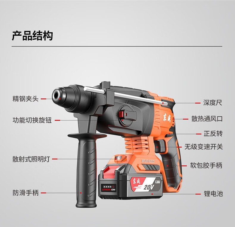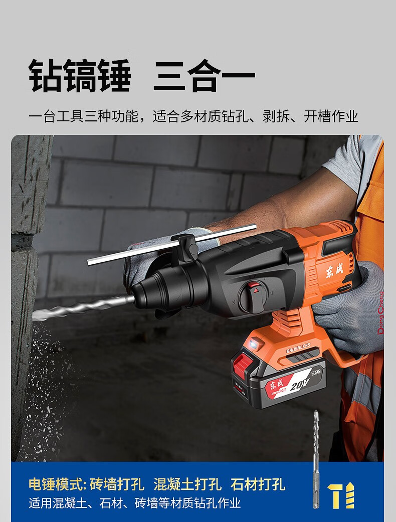 Dongcheng martillo eléctrico recargable martillo eléctrico sin escobillas perforador de impacto de hormigón picador eléctrico multifuncional martillo eléctrico de litio 20V
