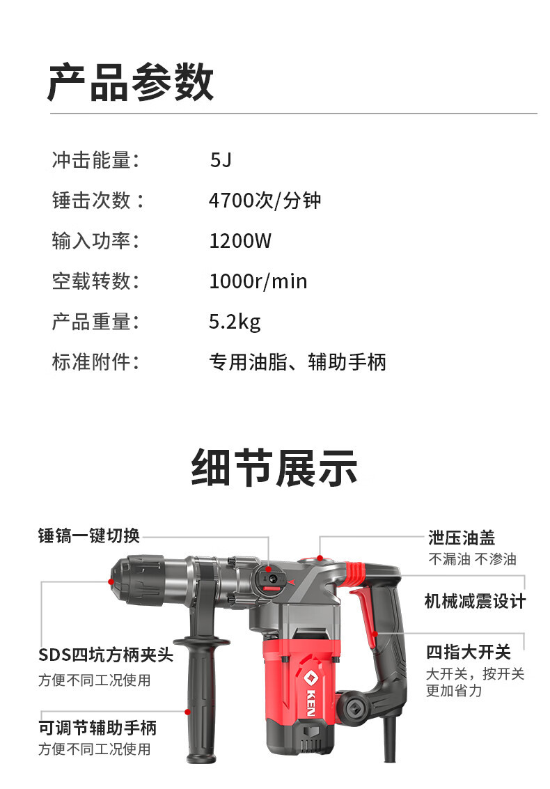 | Modelo | 2832G de doble uso [1200W / 5.2KG] estándar, 2832G de doble uso [1200W / 5.2KG] para enviar broca, 2928G de doble uso [1010W / 4.78KG] caja de plástico, 35 picador eléctrico 2835 [1200W / 5.7kg] estándar, 95 picador eléctrico 2895 [1600W / 16KG] caja de hierro |