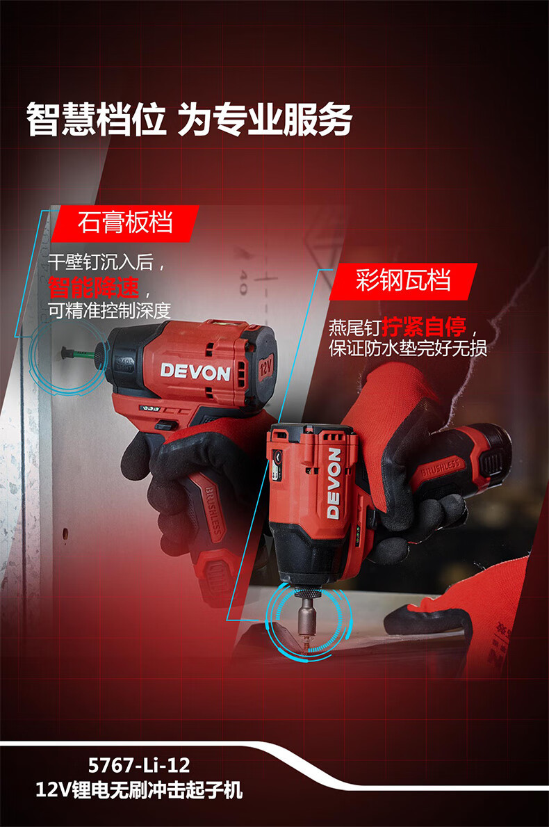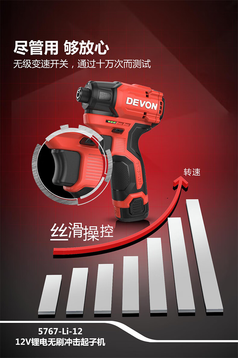El litio tiene (Devon) 12V destornillador de impacto sin escobillas destornillador eléctrico eléctrico 5767 taladro eléctrico
