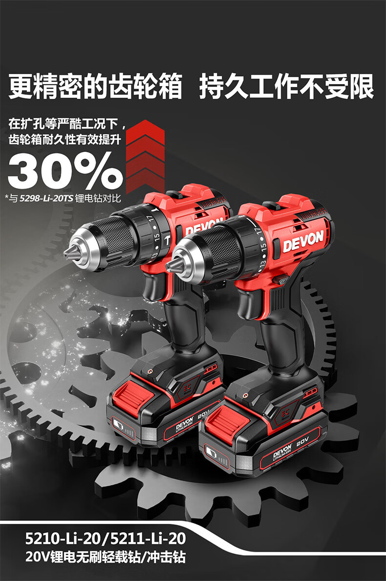 Litio (Devon) taladro eléctrico sin escobillas de 20V 5210 taladro de impacto 5211 taladro eléctrico de mano ligero 50 Nm destornillador