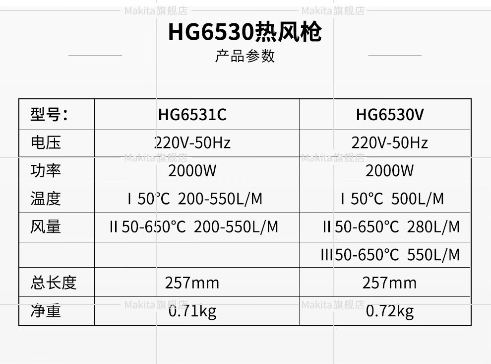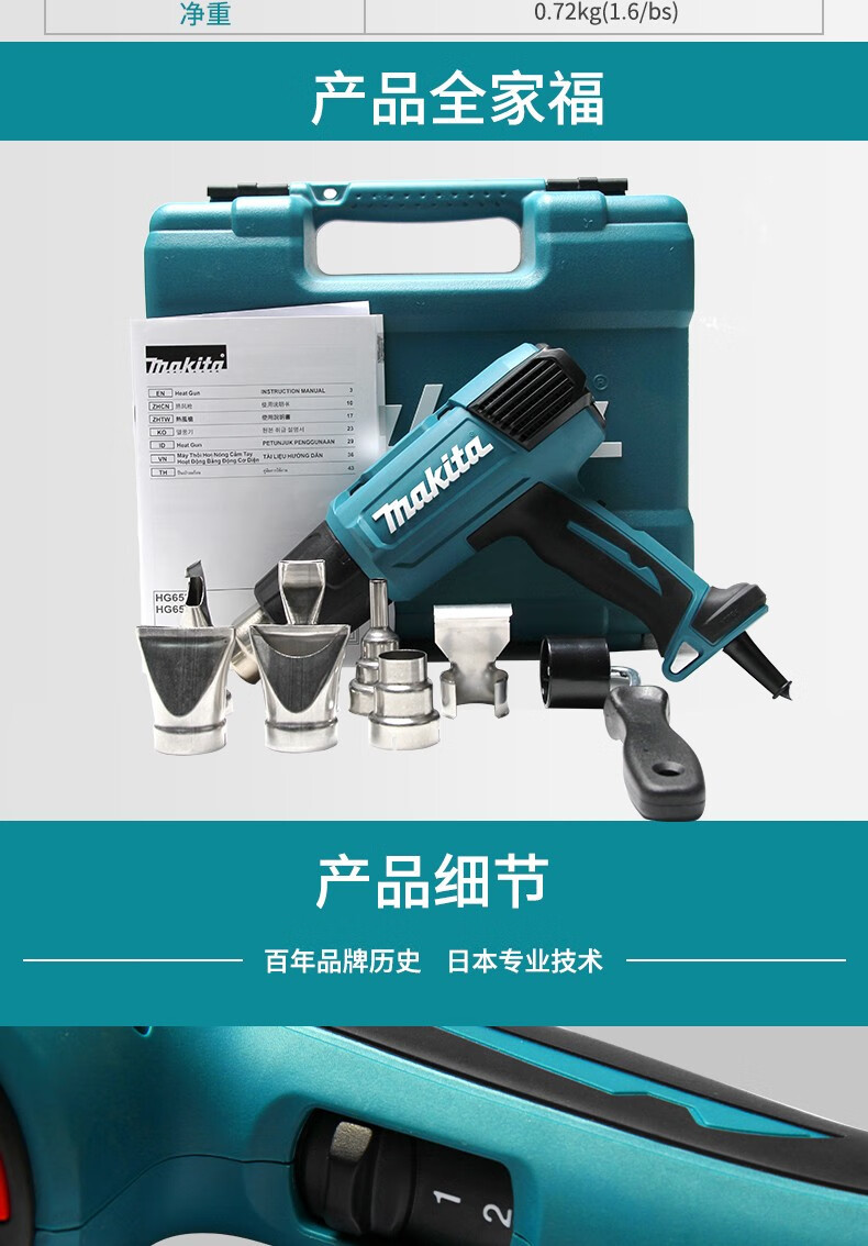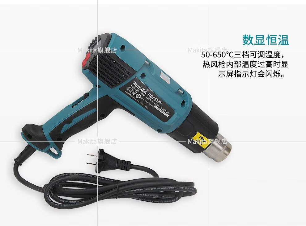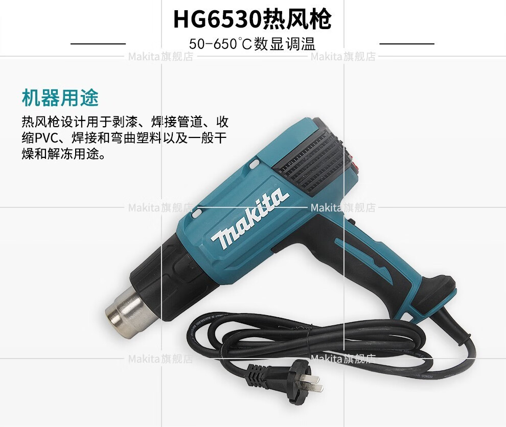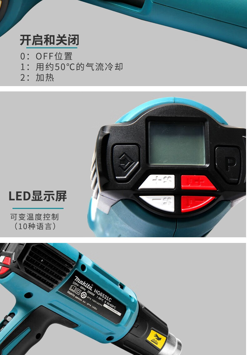 Modelo de especificaciónMutian HG5030K pistola de aire caliente 1600W,Pistola de aire caliente Makita HG5012K 1600W,HG6531CK pistola de aire caliente con pantalla digital 2000W,Mutian HG6530VK pistola de aire caliente 2000W