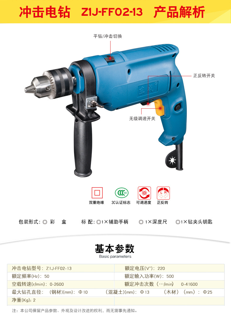 Dongcheng taladro de impacto doméstico multifuncional taladro eléctrico de impacto taladro de linterna taladro de pistola herramienta eléctrica Z1J-FF02 - 13