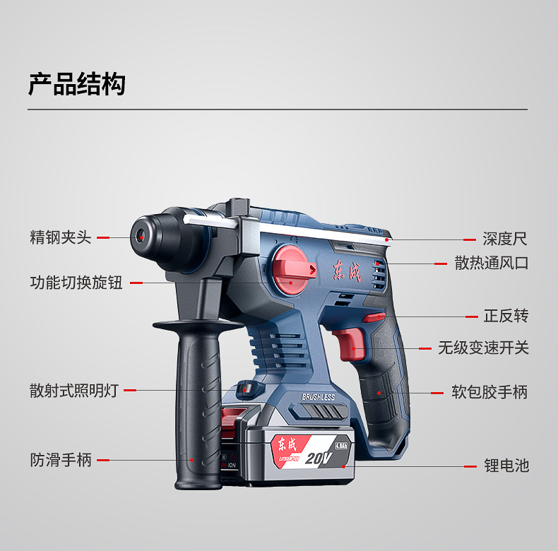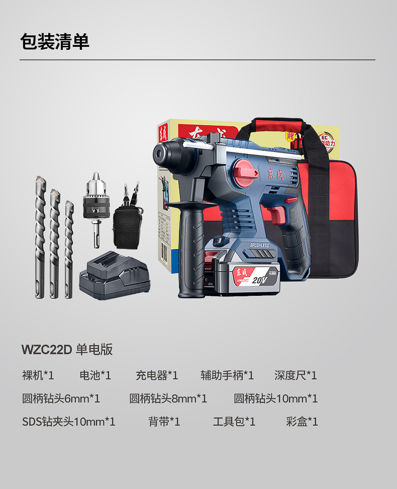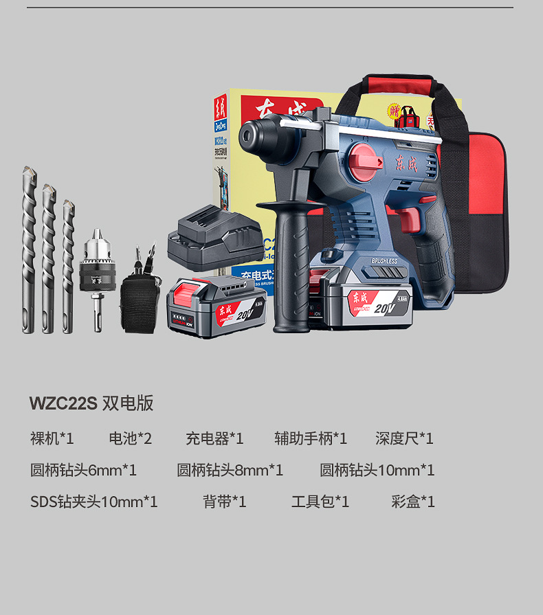 Dongcheng martillo eléctrico de carga sin escobillas WZC22S perforador de impacto martillo eléctrico picador eléctrico perforador eléctrico herramienta eléctrica